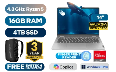 [TOUCHSCREEN] Lenovo IdeaPad Flex 5 AMD Ryzen 5 5625U up to 4.3GHz Processor with AMD Max Boost Clock Technology, 16MB Cache, 6x Cores, 12x Threads / 16GB LPDDR4X RAM / 4TB Ultra-Fast NVME SSD / 14" WUXGA (1920x1200) IPS-Level Touchscreen Display / Integrated AMD Radeon Graphics / <span style="font-size: 20px; color: #00BFFF; font-weight: bold;">Windows 11 Professional (64bit)</span> / 1080p FHD Camera with Privacy Shutter / Realtek RTL 8852BE Wi-Fi 6 Wireless LAN / Bluetooth 5.3 / Fingerprint Reader / 2x USB Type-A / 1x USB Type-C / 1x HDMI / 1x SD card reader / 1x Headphone Audio & Microphone Combo Jack / White Backlit Keyboard / Realtek ALC3287 Audio Technology / Free Lenovo Digital Pen / Lenovo IdeaPad Flex 5 14ABR8 AMD Ryzen 5 Touchscreen Laptop Deal[TOUCHSCREEN] Lenovo IdeaPad Flex 5 AMD Ryzen 5 5625U up to 4.3GHz Processor with AMD Max Boost Clock Technology, 16MB Cache, 6x Cores, 12x Threads / 16GB LPDDR4X RAM / 4TB Ultra-Fast NVME SSD / 14" WUXGA (1920x1200) IPS-Level Touchscreen Display / Integrated AMD Radeon Graphics / Windows 11 Professional (64bit) / 1080p FHD Camera with Privacy Shutter / Realtek RTL 8852BE Wi-Fi 6 Wireless LAN / Bluetooth 5.3 / Fingerprint Reader / 2x USB Type-A / 1x USB Type-C / 1x HDMI / 1x SD card reader / 1x Headphone Audio & Microphone Combo Jack / White Backlit Keyboard / Realtek ALC3287 Audio Technology / Free Lenovo Digital Pen / Lenovo IdeaPad Flex 5 14ABR8 AMD Ryzen 5 Touchscreen Laptop Deal [82XX00G1SA/4TB] / 3 YEARS WARRANTY / [+] GET FREE EVETECH NEO Premium Gaming Backpack+ FREE DELIVERY !