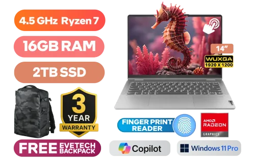 [TOUCHSCREEN] Lenovo IdeaPad Flex 5 14ABR8 AMD Ryzen 7 5825U up to 4.5GHz Processor with AMD Max Boost Clock Technology, 20MB Cache, 8x Cores, 16x Threads / 16GB LPDDR4X RAM / 2TB Ultra-Fast NVME SSD / 14" WUXGA (1920x1200) IPS-Level Touchscreen Display / Integrated AMD Radeon Graphics / <span style="font-size: 20px; color: #00BFFF; font-weight: bold;">Windows 11 Professional (64bit)</span> / 1080p FHD Camera with Privacy Shutter / Realtek RTL 8852BE Wi-Fi 6 Wireless LAN / Bluetooth 5.3 / Fingerprint Reader / 2x USB Type-A / 1x USB Type-C / 1x HDMI / 1x SD card reader / 1x Headphone Audio & Microphone Combo Jack / Realtek ALC3287 Audio / Free Lenovo Digital Pen / Lenovo IdeaPad Flex 5 14ABR8 AMD Ryzen 7 Touchscreen Laptop Deal[TOUCHSCREEN] Lenovo IdeaPad Flex 5 14ABR8 AMD Ryzen 7 5825U up to 4.5GHz Processor with AMD Max Boost Clock Technology, 20MB Cache, 8x Cores, 16x Threads / 16GB LPDDR4X RAM / 2TB Ultra-Fast NVME SSD / 14" WUXGA (1920x1200) IPS-Level Touchscreen Display / Integrated AMD Radeon Graphics / Windows 11 Professional (64bit) / 1080p FHD Camera with Privacy Shutter / Realtek RTL 8852BE Wi-Fi 6 Wireless LAN / Bluetooth 5.3 / Fingerprint Reader / 2x USB Type-A / 1x USB Type-C / 1x HDMI / 1x SD card reader / 1x Headphone Audio & Microphone Combo Jack / Realtek ALC3287 Audio / Free Lenovo Digital Pen / Lenovo IdeaPad Flex 5 14ABR8 AMD Ryzen 7 Touchscreen Laptop Deal [82XX00G2SA/2TB] / 3 YEARS WARRANTY / [+] GET FREE EVETECH DASH Premium Gaming Backpack+ FREE DELIVERY !
