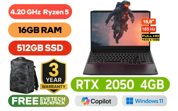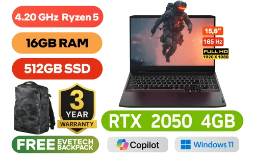Lenovo IdeaPad Gaming 3 15ACH6 AMD Ryzen 5 5500H up to 4.20GHz Processor, 10MB Cache, 4x Cores, 8x Threads / 16GB DDR4 RAM / 512GB Ultra-Fast NVMe SSD / 15.6" FHD 1920 x 1080 Anti-Glare 165Hz IPS-Level Display / NVIDIA GeForce RTX 2050 4GB GDDR6 Dedicated Graphics / No DVD Drive Included / Windows 11 Home (64bit)</span> / HD 720p Webcam With Dual Array Mic / Bluetooth 5.1 / MediaTek Wifi 6 MT7921 Wireless LAN / 2x USB 3.2 Type-A / 1x USB 3.2 Type-C / 1x HDMI 2.0 / Headphone Audio & Microphone Combo Jack / 1x RJ-45 Ethernet Port / 2x 2W Speaker With Nahimic Audio / White Backlit full-size Keyboard / Lenovo IdeaPad Gaming 3 15ACH6 Ryzen 5 RTX 2050 Laptop DealLenovo IdeaPad Gaming 3 15ACH6 AMD Ryzen 5 5500H up to 4.20GHz Processor, 10MB Cache, 4x Cores, 8x Threads / 16GB DDR4 RAM / 512GB Ultra-Fast NVMe SSD / 15.6" FHD 1920 x 1080 Anti-Glare 165Hz IPS-Level Display / NVIDIA GeForce RTX 2050 4GB GDDR6 Dedicated Graphics / No DVD Drive Included / Windows 11 Home (64bit) / HD 720p Webcam With Dual Array Mic / Bluetooth 5.1 / MediaTek Wifi 6 MT7921 Wireless LAN / 2x USB 3.2 Type-A / 1x USB 3.2 Type-C / 1x HDMI 2.0 / Headphone Audio & Microphone Combo Jack / 1x RJ-45 Ethernet Port / 2x 2W Speaker With Nahimic Audio / White Backlit full-size Keyboard / Lenovo IdeaPad Gaming 3 15ACH6 Ryzen 5 RTX 2050 Laptop Deal [82K202CCSA/16GB] / 3 YEARS WARRANTY / [+] GET FREE EVETECH DASH Premium Gaming Backpack+ FREE DELIVERY !
