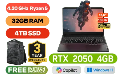 Lenovo IdeaPad Gaming 3 15ACH6 AMD Ryzen 5 5500H up to 4.20GHz Processor, 10MB Cache, 4x Cores, 8x Threads / 32GB DDR4 RAM / 4TB Ultra-Fast NVMe SSD / 15.6" FHD 1920 x 1080 Anti-Glare 165Hz IPS-Level Display / NVIDIA GeForce RTX 2050 4GB GDDR6 Dedicated Graphics / No DVD Drive Included / Windows 11 Home (64bit)</span> / HD 720p Webcam With Dual Array Mic / Bluetooth 5.1 / MediaTek Wifi 6 MT7921 Wireless LAN / 2x USB 3.2 Type-A / 1x USB 3.2 Type-C / 1x HDMI 2.0 / Headphone Audio & Microphone Combo Jack / 1x RJ-45 Ethernet Port / 2x 2W Speaker With Nahimic Audio / White Backlit full-size Keyboard / Lenovo IdeaPad Gaming 3 15ACH6 Ryzen 5 RTX 2050 Laptop DealLenovo IdeaPad Gaming 3 15ACH6 AMD Ryzen 5 5500H up to 4.20GHz Processor, 10MB Cache, 4x Cores, 8x Threads / 32GB DDR4 RAM / 4TB Ultra-Fast NVMe SSD / 15.6" FHD 1920 x 1080 Anti-Glare 165Hz IPS-Level Display / NVIDIA GeForce RTX 2050 4GB GDDR6 Dedicated Graphics / No DVD Drive Included / Windows 11 Home (64bit) / HD 720p Webcam With Dual Array Mic / Bluetooth 5.1 / MediaTek Wifi 6 MT7921 Wireless LAN / 2x USB 3.2 Type-A / 1x USB 3.2 Type-C / 1x HDMI 2.0 / Headphone Audio & Microphone Combo Jack / 1x RJ-45 Ethernet Port / 2x 2W Speaker With Nahimic Audio / White Backlit full-size Keyboard / Lenovo IdeaPad Gaming 3 15ACH6 Ryzen 5 RTX 2050 Laptop Deal [82K202CCSA/32GB/4TB] / 3 YEARS WARRANTY / [+] GET FREE EVETECH DASH Premium Gaming Backpack+ FREE DELIVERY !