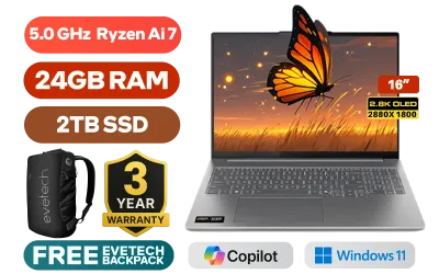 Lenovo Ideapad Pro 5 14IAH10 AMD Ryzen AI 7-350 up to 5.0GHz Processor, 24MB Cache, 8x Cores, 16x Threads / 24GB LPDDR5X RAM / 2TB Ultra-Fast NVMe SSD / 16" 2.8K (2880x1800) OLED Display / Integrated AMD Radeon Graphics / Windows 11 Home (64bit) / RealTek WIFI 7 8922AE Wireless LAN / Bluetooth 5.4 / 1080p FHD IR Camera with Privacy Shutter / 2x USB Type-A / 2x USB-C (DisplayPort™ 2.1 / Power Delivery) / 1 x HDMI / 1x Headphone and Microphone Combo Jack / 1x SD Card Reader / White Backlit Keyboard / 2 Stereo Speakers Optimized with Dolby Atmos Audio / Lenovo Ideapad Pro 5 14IAH10 Ultra 7 Laptop DealLenovo Ideapad Pro 5 14IAH10 AMD Ryzen AI 7-350 up to 5.0GHz Processor, 24MB Cache, 8x Cores, 16x Threads / 24GB LPDDR5X RAM / 2TB Ultra-Fast NVMe SSD / 16" 2.8K (2880x1800) OLED Display / Integrated AMD Radeon Graphics / Windows 11 Home (64bit) / RealTek WIFI 7 8922AE Wireless LAN / Bluetooth 5.4 / 1080p FHD IR Camera with Privacy Shutter / 2x USB Type-A / 2x USB-C (DisplayPort™ 2.1 / Power Delivery) / 1 x HDMI / 1x Headphone and Microphone Combo Jack / 1x SD Card Reader / White Backlit Keyboard / 2 Stereo Speakers Optimized with Dolby Atmos Audio / Lenovo Ideapad Pro 5 14IAH10 Ultra 7 Laptop Deal [83JN003GSA/2TB] / 3 YEARS WARRANTY / [+] GET FREE EVETECH NEO Premium Gaming Backpack+ FREE DELIVERY !