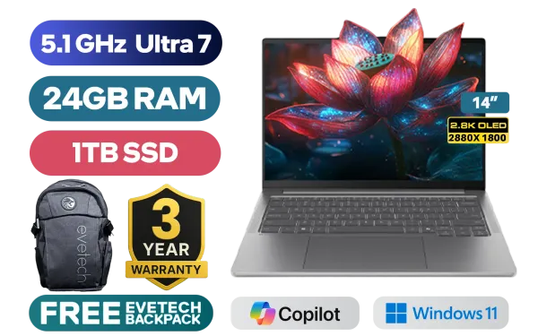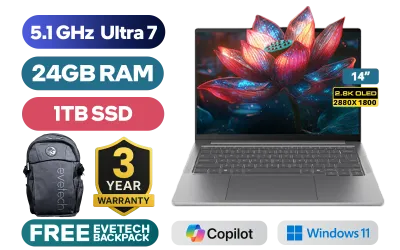 Lenovo Ideapad Pro 5 14IAH10 Intel® Core™ Ultra 7-255H up to 5.1GHz Processor, 24MB Cache, 16x Cores, 16x Threads / 24GB LPDDR5X RAM / 1TB Ultra-Fast NVMe SSD / 14" 2.8K (2880x1800) OLED Display / Integrated Intel Arc Graphics / Windows 11 Home (64bit) / Intel WIFI 7 BE200 Wireless LAN / Bluetooth 5.4 / 1080p FHD IR Camera with Privacy Shutter / 2x USB Type-A / 2x USB-C (Thunderbolt™ 4, DisplayPort™ 2.1 / Power Delivery) / 1 x HDMI / 1x Headphone and Microphone Combo Jack / 1x Micro SD Card Reader / White Backlit Keyboard / 2 Stereo Speakers Optimized with Dolby Atmos Audio / Lenovo Ideapad Pro 5 14IAH10 Ultra 7 Laptop DealLenovo Ideapad Pro 5 14IAH10 Intel® Core™ Ultra 7-255H up to 5.1GHz Processor, 24MB Cache, 16x Cores, 16x Threads / 24GB LPDDR5X RAM / 1TB Ultra-Fast NVMe SSD / 14" 2.8K (2880x1800) OLED Display / Integrated Intel Arc Graphics / Windows 11 Home (64bit) / Intel WIFI 7 BE200 Wireless LAN / Bluetooth 5.4 / 1080p FHD IR Camera with Privacy Shutter / 2x USB Type-A / 2x USB-C (Thunderbolt™ 4, DisplayPort™ 2.1 / Power Delivery) / 1 x HDMI / 1x Headphone and Microphone Combo Jack / 1x Micro SD Card Reader / White Backlit Keyboard / 2 Stereo Speakers Optimized with Dolby Atmos Audio / Lenovo Ideapad Pro 5 14IAH10 Ultra 7 Laptop Deal [83JK002NSA] + FREE DELIVERY !