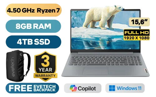 Lenovo IdeaPad Slim 3 15ABR8 AMD Ryzen 7-7730U up to 4.50GHz Processor, 20MB Cache, 8x Cores, 16x Threads / 8GB DDR4 RAM / 4TB Ultra-Fast NVMe SSD / 15.6" FHD 1920 x 1080 Anti-Glare Display / Integrated AMD Radeon Graphics / Windows 11 Home (64bit) / FHD 1080p with Privacy Shutter / Bluetooth 5.2 / MediaTek Wi-Fi 6 MT7921 LAN / 2x USB 3.2 Type-A / 1x USB Type-C (support data transfer, Power Delivery and DisplayPort™) / 1x HDMI 1.4 / 1x SD Card Reader / 1x Headphone Audio & Microphone Combo Jack / 2x 1.5W Speaker optimized with Dolby® Audio / Non-Backlit Full Size Keyboard / Lenovo IdeaPad Slim 3 15ABR8 AMD Ryzen 7 Laptop DealLenovo IdeaPad Slim 3 15ABR8 AMD Ryzen 7-7730U up to 4.50GHz Processor, 20MB Cache, 8x Cores, 16x Threads / 8GB DDR4 RAM / 4TB Ultra-Fast NVMe SSD / 15.6" FHD 1920 x 1080 Anti-Glare Display / Integrated AMD Radeon Graphics / Windows 11 Home (64bit) / FHD 1080p with Privacy Shutter / Bluetooth 5.2 / MediaTek Wi-Fi 6 MT7921 LAN / 2x USB 3.2 Type-A / 1x USB Type-C (support data transfer, Power Delivery and DisplayPort™) / 1x HDMI 1.4 / 1x SD Card Reader / 1x Headphone Audio & Microphone Combo Jack / 2x 1.5W Speaker optimized with Dolby® Audio / Non-Backlit Full Size Keyboard / Lenovo IdeaPad Slim 3 15ABR8 AMD Ryzen 7 Laptop Deal [82XM00KFFU/4TB] / 3 YEARS WARRANTY / [+] GET FREE EVETECH NEO Premium Gaming Backpack / [+] GET FREE Promate ProPods High-Definition TWS Wireless Earphones+ FREE DELIVERY !