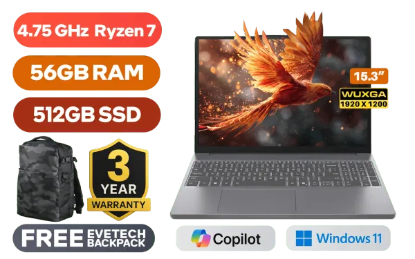 Lenovo IdeaPad Slim 3 15ARP10 AMD Ryzen 7-7735HS up to 4.75GHz Processor, 20MB Cache, 8x Cores, 16x Threads / 56GB DDR5 RAM / 512GB Ultra-Fast NVMe SSD / 15.3" WUXGA (1920x1200) IPS-Level Display / Integrated AMD Radeon Graphics / Windows 11 Home (64bit) / RealTek RL8852BE Wifi 6 Wireless LAN / Bluetooth 5.3 / 1080p FHD IR Camera with Privacy Shutter / 2x USB Type-A / 1x USB Type-C (Supports DisplayPort 1.2 / Power Delivery) / 1x HDMI / 1x SD Card Reader / 1x Headphone & Microphone Combo Jack / 2 Stereo optimized with Dolby® Audio / IdeaPad Slim 3 15ARP10 Ryzen 7 Laptop DealLenovo IdeaPad Slim 3 15ARP10 AMD Ryzen 7-7735HS up to 4.75GHz Processor, 20MB Cache, 8x Cores, 16x Threads / 56GB DDR5 RAM / 512GB Ultra-Fast NVMe SSD / 15.3" WUXGA (1920x1200) IPS-Level Display / Integrated AMD Radeon Graphics / Windows 11 Home (64bit) / RealTek RL8852BE Wifi 6 Wireless LAN / Bluetooth 5.3 / 1080p FHD IR Camera with Privacy Shutter / 2x USB Type-A / 1x USB Type-C (Supports DisplayPort 1.2 / Power Delivery) / 1x HDMI / 1x SD Card Reader / 1x Headphone & Microphone Combo Jack / 2 Stereo optimized with Dolby® Audio / IdeaPad Slim 3 15ARP10 Ryzen 7 Laptop Deal [83K700DTSA/56GB] / 3 YEARS WARRANTY / [+] GET FREE EVETECH DASH Premium Gaming Backpack+ FREE DELIVERY !