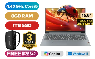 Lenovo IdeaPad Slim 3 15IAH8 12th Gen Intel Core i5-12450H up to 4.40GHz Processor, 12MB Cache, 8x Cores, 12x Threads / 8GB LPDDR5 RAM / 1TB Ultra-Fast NVMe SSD / 15.6" FHD 1920 x 1080 Anti-Glare Display / Integrated Intel UHD Graphics, DirectX 12 Support / Windows 11 Home (64bit) / FHD 1080p with Privacy Shutter / Bluetooth 5.2 / Intel Wifi 6 Wireless LAN / 2x USB 3.2 Type-A / 1x USB Type-C (support data transfer, Power Delivery and DisplayPort™) / 1x HDMI 1.4 / 1x SD Card Reader / 1x Headphone Audio & Microphone Combo Jack / 2x 1.5W Speaker optimized with Dolby® Audio / Non Backlit Keyboard / Lenovo IdeaPad Slim 3 15IAH8 Core i5 Laptop DealLenovo IdeaPad Slim 3 15IAH8 12th Gen Intel Core i5-12450H up to 4.40GHz Processor, 12MB Cache, 8x Cores, 12x Threads / 8GB LPDDR5 RAM / 1TB Ultra-Fast NVMe SSD / 15.6" FHD 1920 x 1080 Anti-Glare Display / Integrated Intel UHD Graphics, DirectX 12 Support / Windows 11 Home (64bit) / FHD 1080p with Privacy Shutter / Bluetooth 5.2 / Intel Wifi 6 Wireless LAN / 2x USB 3.2 Type-A / 1x USB Type-C (support data transfer, Power Delivery and DisplayPort™) / 1x HDMI 1.4 / 1x SD Card Reader / 1x Headphone Audio & Microphone Combo Jack / 2x 1.5W Speaker optimized with Dolby® Audio / Non Backlit Keyboard / Lenovo IdeaPad Slim 3 15IAH8 Core i5 Laptop Deal [83ER00KEFU/1TB] / 3 YEARS WARRANTY / [+] GET FREE EVETECH NEO Premium Gaming Backpack+ FREE DELIVERY !