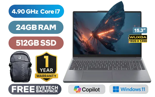 Lenovo IdeaPad Slim 3 15IRH10 13th Gen Intel® Core™ i7-13620H up to 4.90GHz Processor, 12MB Cache, 10x Cores, 16x Threads / 24GB DDR5 RAM / 512GB Ultra-Fast NVMe SSD / 15.3" WUXGA (1920x1200) IPS-Level Display / Integrated Intel UHD Graphics / Windows 11 Home (64bit) / Intel Wifi 6 AX203 Wireless LAN / Bluetooth 5.2 / 720p HD Camera with Privacy Shutter / 2x USB Type-A / 1x USB Type-C (Supports DisplayPort 1.2 / Power Delivery) / 1x HDMI / 1x SD Card Reader / 1x Headphone & Microphone Combo Jack / 2 Stereo optimized with Dolby® Audio / 1 Year Warranty / Lenovo IdeaPad Slim 3 15IRH10 Intel Core i7 Laptop DealLenovo IdeaPad Slim 3 15IRH10 13th Gen Intel® Core™ i7-13620H up to 4.90GHz Processor, 12MB Cache, 10x Cores, 16x Threads / 24GB DDR5 RAM / 512GB Ultra-Fast NVMe SSD / 15.3" WUXGA (1920x1200) IPS-Level Display / Integrated Intel UHD Graphics / Windows 11 Home (64bit) / Intel Wifi 6 AX203 Wireless LAN / Bluetooth 5.2 / 720p HD Camera with Privacy Shutter / 2x USB Type-A / 1x USB Type-C (Supports DisplayPort 1.2 / Power Delivery) / 1x HDMI / 1x SD Card Reader / 1x Headphone & Microphone Combo Jack / 2 Stereo optimized with Dolby® Audio / 1 Year Warranty / Lenovo IdeaPad Slim 3 15IRH10 Intel Core i7 Laptop Deal [83K100EWSA/24GB] / [+] GET FREE EVETECH FLUX Premium Gaming Backpack+ FREE DELIVERY !