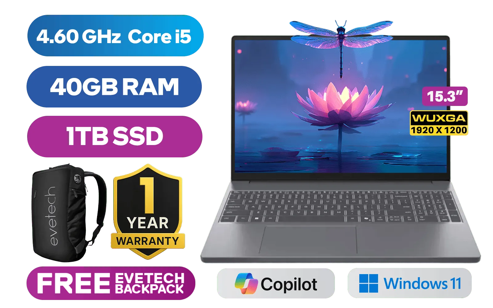 Lenovo IdeaPad Slim 3 15IRH10 13th Gen Intel® Core™ i5-13420H up to 4.60GHz Processor, 12MB Cache, 8x Cores, 12x Threads / 40GB DDR5 RAM / 1TB Ultra-Fast NVMe SSD / 15.3" WUXGA (1920x1200) IPS-Level Display / Integrated Intel UHD Graphics / Windows 11 Home (64bit) / Intel Wifi 6 AX203 Wireless LAN / Bluetooth 5.2 / 720p HD Camera with Privacy Shutter / 2x USB Type-A / 1x USB Type-C (Supports DisplayPort 1.2 / Power Delivery) / 1x HDMI / 1x SD Card Reader / 1x Headphone & Microphone Combo Jack / 2 Stereo optimized with Dolby® Audio / 1 Year Warranty / Lenovo IdeaPad Slim 3 15IRH10 13th Gen Core i5 Laptop DealLenovo IdeaPad Slim 3 15IRH10 13th Gen Intel® Core™ i5-13420H up to 4.60GHz Processor, 12MB Cache, 8x Cores, 12x Threads / 40GB DDR5 RAM / 1TB Ultra-Fast NVMe SSD / 15.3" WUXGA (1920x1200) IPS-Level Display / Integrated Intel UHD Graphics / Windows 11 Home (64bit) / Intel Wifi 6 AX203 Wireless LAN / Bluetooth 5.2 / 720p HD Camera with Privacy Shutter / 2x USB Type-A / 1x USB Type-C (Supports DisplayPort 1.2 / Power Delivery) / 1x HDMI / 1x SD Card Reader / 1x Headphone & Microphone Combo Jack / 2 Stereo optimized with Dolby® Audio / 1 Year Warranty / Lenovo IdeaPad Slim 3 15IRH10 13th Gen Core i5 Laptop Deal [83K100EVSA/40GB/1TB] / [+] GET FREE EVETECH NEO Premium Gaming Backpack+ FREE DELIVERY !