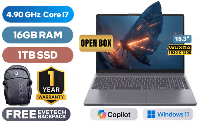 [OPEN BOX] Lenovo IdeaPad Slim 3 15IRH10 13th Gen Intel® Core™ i7-13620H up to 4.90GHz Processor, 12MB Cache, 10x Cores, 16x Threads / 16GB DDR5 RAM / 1TB Ultra-Fast NVMe SSD / 15.3" WUXGA (1920x1200) IPS-Level Display / Integrated Intel UHD Graphics / Windows 11 Home (64bit) / Intel Wifi 6 AX203 Wireless LAN / Bluetooth 5.2 / 720p HD Camera with Privacy Shutter / 2x USB Type-A / 1x USB Type-C (Supports DisplayPort 1.2 / Power Delivery) / 1x HDMI / 1x SD Card Reader / 1x Headphone & Microphone Combo Jack / 2 Stereo optimized with Dolby® Audio / 1 Year Warranty / Lenovo IdeaPad Slim 3 15IRH10 Intel Core i7 Laptop Deal[OPEN BOX] Lenovo IdeaPad Slim 3 15IRH10 13th Gen Intel® Core™ i7-13620H up to 4.90GHz Processor, 12MB Cache, 10x Cores, 16x Threads / 16GB DDR5 RAM / 1TB Ultra-Fast NVMe SSD / 15.3" WUXGA (1920x1200) IPS-Level Display / Integrated Intel UHD Graphics / Windows 11 Home (64bit) / Intel Wifi 6 AX203 Wireless LAN / Bluetooth 5.2 / 720p HD Camera with Privacy Shutter / 2x USB Type-A / 1x USB Type-C (Supports DisplayPort 1.2 / Power Delivery) / 1x HDMI / 1x SD Card Reader / 1x Headphone & Microphone Combo Jack / 2 Stereo optimized with Dolby® Audio / 1 Year Warranty / Lenovo IdeaPad Slim 3 15IRH10 Intel Core i7 Laptop Deal [83K100EWSA/1TB] / [+] GET FREE EVETECH FLUX Premium Gaming Backpack+ FREE DELIVERY !