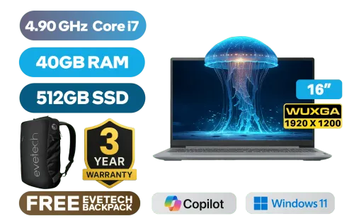 Lenovo IdeaPad Slim 3 16IRH10 13th Gen Intel® Core™ i7-13620H up to 4.90GHz Processor, 24MB Cache, 10x Cores, 16x Threads / 40GB DDR5 RAM / 512GB Ultra-Fast NVMe SSD / 16" WUXGA (1920 x 1200) IPS-Level Display / Integrated Intel UHD Graphics / Windows 11 Home (64bit) / HD 720p Camera with Privacy Shutter / Intel Wifi 6 AX203 Wireless LAN / Bluetooth 5.2 / 2x USB Type-A / 1x USB Type-C / 1x HDMI / 1x SD Card Reader / 1x Headphone Audio & Microphone Combo Jack / 2x 2W Speaker optimized with Dolby® Audio / Non Backlit Keyboard / Lenovo IdeaPad Slim 3 16IRH10 Core i7 Laptop DealLenovo IdeaPad Slim 3 16IRH10 13th Gen Intel® Core™ i7-13620H up to 4.90GHz Processor, 24MB Cache, 10x Cores, 16x Threads / 40GB DDR5 RAM / 512GB Ultra-Fast NVMe SSD / 16" WUXGA (1920 x 1200) IPS-Level Display / Integrated Intel UHD Graphics / Windows 11 Home (64bit) / HD 720p Camera with Privacy Shutter / Intel Wifi 6 AX203 Wireless LAN / Bluetooth 5.2 / 2x USB Type-A / 1x USB Type-C / 1x HDMI / 1x SD Card Reader / 1x Headphone Audio & Microphone Combo Jack / 2x 2W Speaker optimized with Dolby® Audio / Non Backlit Keyboard / Lenovo IdeaPad Slim 3 16IRH10 Core i7 Laptop Deal [83K2004JSA/40GB] / [+] GET FREE EVETECH NEO Premium Gaming Backpack / 3 YEARS WARRANTY / [+] GET FREE Promate AirClip Wireless Earbuds+ FREE DELIVERY !