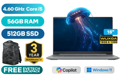 Lenovo IdeaPad Slim 3 16IRH10 13th Gen Intel® Core™ i5-13420H up to 4.60GHz Processor, 12MB Cache, 8x Cores, 12x Threads / 56GB DDR5 RAM / 512GB Ultra-Fast NVMe SSD / 16" WUXGA (1920 x 1200) IPS-Level Display / Integrated Intel UHD Graphics / Windows 11 Home (64bit) / HD 720p Camera with Privacy Shutter / Intel Wifi 6 AX203 Wireless LAN / Bluetooth 5.2 / 2x USB Type-A / 1x USB Type-C / 1x HDMI / 1x SD Card Reader / 1x Headphone Audio & Microphone Combo Jack / 2x 2W Speaker optimized with Dolby® Audio / Non Backlit Keyboard / Lenovo IdeaPad Slim 3 16IRH10 Core i5 Laptop DealLenovo IdeaPad Slim 3 16IRH10 13th Gen Intel® Core™ i5-13420H up to 4.60GHz Processor, 12MB Cache, 8x Cores, 12x Threads / 56GB DDR5 RAM / 512GB Ultra-Fast NVMe SSD / 16" WUXGA (1920 x 1200) IPS-Level Display / Integrated Intel UHD Graphics / Windows 11 Home (64bit) / HD 720p Camera with Privacy Shutter / Intel Wifi 6 AX203 Wireless LAN / Bluetooth 5.2 / 2x USB Type-A / 1x USB Type-C / 1x HDMI / 1x SD Card Reader / 1x Headphone Audio & Microphone Combo Jack / 2x 2W Speaker optimized with Dolby® Audio / Non Backlit Keyboard / Lenovo IdeaPad Slim 3 16IRH10 Core i5 Laptop Deal [83K2004HSA/56GB] / 3 YEARS WARRANTY / [+] GET FREE EVETECH DASH Premium Gaming Backpack+ FREE DELIVERY !