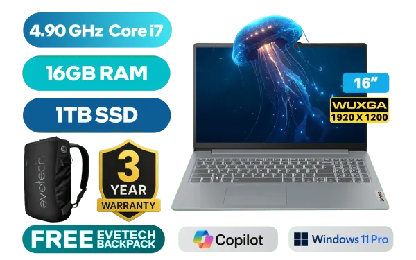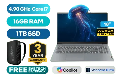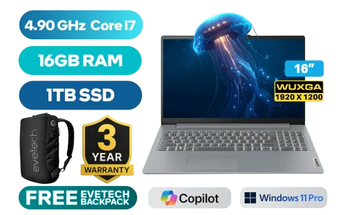 Lenovo IdeaPad Slim 3 16IRH10 13th Gen Intel Core i7-13620H Processors up to 4.90 GHz Processor, 24MB Cache, 10x Cores, 16x Threads / 16GB DDR5 RAM / 1TB Ultra-Fast NVME SSD / 16" WUXGA 1920x1200 IPS-Level Anti-glare 60Hz Display / Integrated Intel UHD Graphics / <span style="font-size: 20px; color: #00BFFF; font-weight: bold;">Windows 11 Professional (64bit)</span> / Intel WiFi 6 AX203 Wireless LAN / Bluetooth 5.2 / HD 720p with Privacy Shutter Camera / 2x USB Type-A / 1x USB Type-C with (DisplayPort™ 1.2) / 1x HDMI / 1x Headphone and Microphone Audio Combo Jack / 1x SD Card Reader / 2x 2W Speaker optimized with Dolby® Audio / Non Backlit Keyboard / Lenovo IdeaPad Slim 3 16IRH10 Intel Core i7 Laptop DealLenovo IdeaPad Slim 3 16IRH10 13th Gen Intel Core i7-13620H Processors up to 4.90 GHz Processor, 24MB Cache, 10x Cores, 16x Threads / 16GB DDR5 RAM / 1TB Ultra-Fast NVME SSD / 16" WUXGA 1920x1200 IPS-Level Anti-glare 60Hz Display / Integrated Intel UHD Graphics / Windows 11 Professional (64bit) / Intel WiFi 6 AX203 Wireless LAN / Bluetooth 5.2 / HD 720p with Privacy Shutter Camera / 2x USB Type-A / 1x USB Type-C with (DisplayPort™ 1.2) / 1x HDMI / 1x Headphone and Microphone Audio Combo Jack / 1x SD Card Reader / 2x 2W Speaker optimized with Dolby® Audio / Non Backlit Keyboard / Lenovo IdeaPad Slim 3 16IRH10 Intel Core i7 Laptop Deal [83K2004KSA/1TB] / [+] GET FREE EVETECH NEO Premium Gaming Backpack / 3 YEARS WARRANTY / [+] GET FREE Promate AirClip Wireless Earbuds+ FREE DELIVERY !