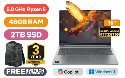 Lenovo IdeaPad Slim 5 16AHP10 AMD Ryzen 5-8645HS up to 5.0GHz Processor, 22MB Cache, 6x Cores, 12x Threads / 48GB DDR5 RAM / 2TB Ultra-Fast NVMe SSD / 16" 2.8K (2880x1800) OLED Display / Integrated Radeon 760M Graphics / Windows 11 Home (64bit) / MediaTek Wifi 7 MT7925 Wireless LAN / Bluetooth 5.4 / 1080p FHD IR Camera with Privacy Shutter / 2x USB Type-A / 2x USB Type-C (Supports DisplayPort 1.2 / Power Delivery 3.0) / 1x HDMI / 1x MIcro SD Card Reader / 1x Headphone and Microphone Combo Jack / White Backlit Keyboard / 2x Stereo Speakers optimized with Dolby Audio / Lenovo IdeaPad Slim 5 16AHP10 Ryzen 5 Laptop DealLenovo IdeaPad Slim 5 16AHP10 AMD Ryzen 5-8645HS up to 5.0GHz Processor, 22MB Cache, 6x Cores, 12x Threads / 48GB DDR5 RAM / 2TB Ultra-Fast NVMe SSD / 16" 2.8K (2880x1800) OLED Display / Integrated Radeon 760M Graphics / Windows 11 Home (64bit) / MediaTek Wifi 7 MT7925 Wireless LAN / Bluetooth 5.4 / 1080p FHD IR Camera with Privacy Shutter / 2x USB Type-A / 2x USB Type-C (Supports DisplayPort 1.2 / Power Delivery 3.0) / 1x HDMI / 1x MIcro SD Card Reader / 1x Headphone and Microphone Combo Jack / White Backlit Keyboard / 2x Stereo Speakers optimized with Dolby Audio / Lenovo IdeaPad Slim 5 16AHP10 Ryzen 5 Laptop Deal [83HW003PSA/48GB/2TB] / [+] GET FREE EVETECH DASH Premium Gaming Backpack / 3 YEARS WARRANTY + FREE DELIVERY !