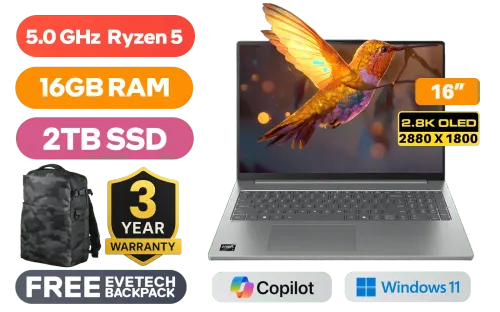 Lenovo IdeaPad Slim 5 16AHP10 AMD Ryzen 5-8645HS up to 5.0GHz Processor, 22MB Cache, 6x Cores, 12x Threads / 16GB DDR5 RAM / 2TB Ultra-Fast NVMe SSD / 16" 2.8K (2880x1800) OLED Display / Integrated Radeon 760M Graphics / Windows 11 Home (64bit) / MediaTek Wifi 7 MT7925 Wireless LAN / Bluetooth 5.4 / 1080p FHD IR Camera with Privacy Shutter / 2x USB Type-A / 2x USB Type-C (Supports DisplayPort 1.2 / Power Delivery 3.0) / 1x HDMI / 1x MIcro SD Card Reader / 1x Headphone and Microphone Combo Jack / White Backlit Keyboard / 2x Stereo Speakers optimized with Dolby Audio / Lenovo IdeaPad Slim 5 16AHP10 Ryzen 5 Laptop DealLenovo IdeaPad Slim 5 16AHP10 AMD Ryzen 5-8645HS up to 5.0GHz Processor, 22MB Cache, 6x Cores, 12x Threads / 16GB DDR5 RAM / 2TB Ultra-Fast NVMe SSD / 16" 2.8K (2880x1800) OLED Display / Integrated Radeon 760M Graphics / Windows 11 Home (64bit) / MediaTek Wifi 7 MT7925 Wireless LAN / Bluetooth 5.4 / 1080p FHD IR Camera with Privacy Shutter / 2x USB Type-A / 2x USB Type-C (Supports DisplayPort 1.2 / Power Delivery 3.0) / 1x HDMI / 1x MIcro SD Card Reader / 1x Headphone and Microphone Combo Jack / White Backlit Keyboard / 2x Stereo Speakers optimized with Dolby Audio / Lenovo IdeaPad Slim 5 16AHP10 Ryzen 5 Laptop Deal [83HW003PSA/2TB] / [+] GET FREE EVETECH DASH Premium Gaming Backpack / 3 YEARS WARRANTY + FREE DELIVERY !