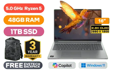 Lenovo IdeaPad Slim 5 16AHP10 AMD Ryzen 5-8645HS up to 5.0GHz Processor, 22MB Cache, 6x Cores, 12x Threads / 48GB DDR5 RAM / 1TB Ultra-Fast NVMe SSD / 16" 2.8K (2880x1800) OLED Display / Integrated Radeon 760M Graphics / Windows 11 Home (64bit) / MediaTek Wifi 7 MT7925 Wireless LAN / Bluetooth 5.4 / 1080p FHD IR Camera with Privacy Shutter / 2x USB Type-A / 2x USB Type-C (Supports DisplayPort 1.2 / Power Delivery 3.0) / 1x HDMI / 1x MIcro SD Card Reader / 1x Headphone and Microphone Combo Jack / White Backlit Keyboard / 2x Stereo Speakers optimized with Dolby Audio / Lenovo IdeaPad Slim 5 16AHP10 Ryzen 5 Laptop DealLenovo IdeaPad Slim 5 16AHP10 AMD Ryzen 5-8645HS up to 5.0GHz Processor, 22MB Cache, 6x Cores, 12x Threads / 48GB DDR5 RAM / 1TB Ultra-Fast NVMe SSD / 16" 2.8K (2880x1800) OLED Display / Integrated Radeon 760M Graphics / Windows 11 Home (64bit) / MediaTek Wifi 7 MT7925 Wireless LAN / Bluetooth 5.4 / 1080p FHD IR Camera with Privacy Shutter / 2x USB Type-A / 2x USB Type-C (Supports DisplayPort 1.2 / Power Delivery 3.0) / 1x HDMI / 1x MIcro SD Card Reader / 1x Headphone and Microphone Combo Jack / White Backlit Keyboard / 2x Stereo Speakers optimized with Dolby Audio / Lenovo IdeaPad Slim 5 16AHP10 Ryzen 5 Laptop Deal [83HW003PSA/48GB] / [+] GET FREE EVETECH DASH Premium Gaming Backpack / 3 YEARS WARRANTY + FREE DELIVERY !