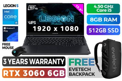 Lenovo Legion 5 15ITH6H 82JH0064SA Intel Core i5-11400H up to 4.50GHz Processor, 24MB Cache, 6x Cores, 12x Threads / 8GB DDR4 RAM / 512GB Ultra-Fast NVMe SSD / 15.6" Full HD 1920x1080 Anti-glare 165Hz IPS-Level 300nits With G-Sync Display / NVIDIA 30 Series GeForce RTX 3060 6GB GDDR6 Dedicated Graphics / <span style="color:blue; font-size: 17px;">Windows 11 Professional (64bit)</span> / 720P With E-Camera Shutter Switch With Dual Array Microphone / Dual Band High Performance 802.11ax WiFi 6 Wireless LAN / Bluetooth 5.1 / 4 x USB 3.2 Type-A / 2 x USB Type-C Thunderbolt™ 4 / 1 x HDMI 2.1 / Headphone Audio & Microphone Combo Jack / <span style="font-size: 20px; color: rgb(255, 0, 0);">R</span><span style="font-size: 20px; color: rgb(51, 153, 0);">G</span><span style="font-size: 20px; color: rgb(51, 102, 255);">B</span> Backlit Keyboard / 2x 2W Speaker With Nahimic Audio / FREE Lenovo Legion M300 RGB Gaming Mouse / Lenovo Legion 5 15ITH6H Core i5 RTX 3060 Gaming Laptop DealLenovo Legion 5 15ITH6H 82JH0064SA Intel Core i5-11400H up to 4.50GHz Processor, 24MB Cache, 6x Cores, 12x Threads / 8GB DDR4 RAM / 512GB Ultra-Fast NVMe SSD / 15.6" Full HD 1920x1080 Anti-glare 165Hz IPS-Level 300nits With G-Sync Display / NVIDIA 30 Series GeForce RTX 3060 6GB GDDR6 Dedicated Graphics / Windows 11 Professional (64bit) / 720P With E-Camera Shutter Switch With Dual Array Microphone / Dual Band High Performance 802.11ax WiFi 6 Wireless LAN / Bluetooth 5.1 / 4 x USB 3.2 Type-A / 2 x USB Type-C Thunderbolt™ 4 / 1 x HDMI 2.1 / Headphone Audio & Microphone Combo Jack / RGB Backlit Keyboard / 2x 2W Speaker With Nahimic Audio / FREE Lenovo Legion M300 RGB Gaming Mouse / Lenovo Legion 5 15ITH6H Core i5 RTX 3060 Gaming Laptop Deal [82JH0064SA] / 3 YEARS WARRANTY / [+] GET FREE EVETECH NEO Premium Gaming Backpack+ FREE DELIVERY !