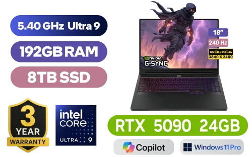 [ G-SYNC ] Lenovo Legion 9 18IAX10 Intel Core Ultra 9-275HX up to 5.40GHz Processor, 76MB Cache, 24x Cores, 24x Threads / 192GB DDR5 RAM / 8TB Ultra-Fast NVMe SSD / 18" WQUXGA (3840 x 2400) 240Hz IPS-Level Display / NVIDIA GeForce RTX 5090 24GB GDDR7 Dedicated Graphics / <span style="font-size: 20px; color: #00BFFF; font-weight: bold;">Windows 11 Professional (64bit)</span> / Intel Killer Wi-Fi 7 BE1750x Wireless LAN / Bluetooth 5.4 / 5.0MP IR Camera with E-Shutter / 3x USB-A / 3x USB-C (Supports Thunderbolt 5 / DisplayPort 2.1 / Power Delivery) / 1x HDMI / 1x Headphone & Microphone Combo Jack / 1x RJ-45 / 1x SD Card Reader / RGB Backlit Keyboard / 6x stereo speakers with Nahimic Audio / Lenovo Legion 9 18IAX10 Intel Core Ultra 9 RTX 5090 Gaming Laptop Deal[ G-SYNC ] Lenovo Legion 9 18IAX10 Intel Core Ultra 9-275HX up to 5.40GHz Processor, 76MB Cache, 24x Cores, 24x Threads / 192GB DDR5 RAM / 8TB Ultra-Fast NVMe SSD / 18" WQUXGA (3840 x 2400) 240Hz IPS-Level Display / NVIDIA GeForce RTX 5090 24GB GDDR7 Dedicated Graphics / Windows 11 Professional (64bit) / Intel Killer Wi-Fi 7 BE1750x Wireless LAN / Bluetooth 5.4 / 5.0MP IR Camera with E-Shutter / 3x USB-A / 3x USB-C (Supports Thunderbolt 5 / DisplayPort 2.1 / Power Delivery) / 1x HDMI / 1x Headphone & Microphone Combo Jack / 1x RJ-45 / 1x SD Card Reader / RGB Backlit Keyboard / 6x stereo speakers with Nahimic Audio / Lenovo Legion 9 18IAX10 Intel Core Ultra 9 RTX 5090 Gaming Laptop Deal [83EY004RSA/192GB/8TB] / 3 YEARS WARRANTY / [+]Get Resident Evil: Requiem with select GeForce RTX 50 Series (Standard Edition)+ FREE DELIVERY !