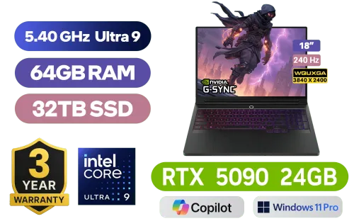 [ G-SYNC ] Lenovo Legion 9 18IAX10 Intel Core Ultra 9-275HX up to 5.40GHz Processor, 76MB Cache, 24x Cores, 24x Threads / 64GB DDR5 RAM / 32TB Ultra-Fast NVMe SSD / 18" WQUXGA (3840 x 2400) 240Hz IPS-Level Display / NVIDIA GeForce RTX 5090 24GB GDDR7 Dedicated Graphics / <span style="font-size: 20px; color: #00BFFF; font-weight: bold;">Windows 11 Professional (64bit)</span> / Intel Killer Wi-Fi 7 BE1750x Wireless LAN / Bluetooth 5.4 / 5.0MP IR Camera with E-Shutter / 3x USB-A / 3x USB-C (Supports Thunderbolt 5 / DisplayPort 2.1 / Power Delivery) / 1x HDMI / 1x Headphone & Microphone Combo Jack / 1x RJ-45 / 1x SD Card Reader / RGB Backlit Keyboard / 6x stereo speakers with Nahimic Audio / Lenovo Legion 9 18IAX10 Intel Core Ultra 9 RTX 5090 Gaming Laptop Deal[ G-SYNC ] Lenovo Legion 9 18IAX10 Intel Core Ultra 9-275HX up to 5.40GHz Processor, 76MB Cache, 24x Cores, 24x Threads / 64GB DDR5 RAM / 32TB Ultra-Fast NVMe SSD / 18" WQUXGA (3840 x 2400) 240Hz IPS-Level Display / NVIDIA GeForce RTX 5090 24GB GDDR7 Dedicated Graphics / Windows 11 Professional (64bit) / Intel Killer Wi-Fi 7 BE1750x Wireless LAN / Bluetooth 5.4 / 5.0MP IR Camera with E-Shutter / 3x USB-A / 3x USB-C (Supports Thunderbolt 5 / DisplayPort 2.1 / Power Delivery) / 1x HDMI / 1x Headphone & Microphone Combo Jack / 1x RJ-45 / 1x SD Card Reader / RGB Backlit Keyboard / 6x stereo speakers with Nahimic Audio / Lenovo Legion 9 18IAX10 Intel Core Ultra 9 RTX 5090 Gaming Laptop Deal [83EY004RSA/32TB] / 3 YEARS WARRANTY / [+]Get Resident Evil: Requiem with select GeForce RTX 50 Series (Standard Edition)+ FREE DELIVERY !