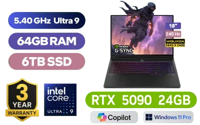 [ G-SYNC ] Lenovo Legion 9 18IAX10 Intel Core Ultra 9-275HX up to 5.40GHz Processor, 76MB Cache, 24x Cores, 24x Threads / 64GB DDR5 RAM / 6TB Ultra-Fast NVMe SSD / 18" WQUXGA (3840 x 2400) 240Hz IPS-Level Display / NVIDIA GeForce RTX 5090 24GB GDDR7 Dedicated Graphics / <span style="font-size: 20px; color: #00BFFF; font-weight: bold;">Windows 11 Professional (64bit)</span> / Intel Killer Wi-Fi 7 BE1750x Wireless LAN / Bluetooth 5.4 / 5.0MP IR Camera with E-Shutter / 3x USB-A / 3x USB-C (Supports Thunderbolt 5 / DisplayPort 2.1 / Power Delivery) / 1x HDMI / 1x Headphone & Microphone Combo Jack / 1x RJ-45 / 1x SD Card Reader / RGB Backlit Keyboard / 6x stereo speakers with Nahimic Audio / Lenovo Legion 9 18IAX10 Intel Core Ultra 9 RTX 5090 Gaming Laptop Deal[ G-SYNC ] Lenovo Legion 9 18IAX10 Intel Core Ultra 9-275HX up to 5.40GHz Processor, 76MB Cache, 24x Cores, 24x Threads / 64GB DDR5 RAM / 6TB Ultra-Fast NVMe SSD / 18" WQUXGA (3840 x 2400) 240Hz IPS-Level Display / NVIDIA GeForce RTX 5090 24GB GDDR7 Dedicated Graphics / Windows 11 Professional (64bit) / Intel Killer Wi-Fi 7 BE1750x Wireless LAN / Bluetooth 5.4 / 5.0MP IR Camera with E-Shutter / 3x USB-A / 3x USB-C (Supports Thunderbolt 5 / DisplayPort 2.1 / Power Delivery) / 1x HDMI / 1x Headphone & Microphone Combo Jack / 1x RJ-45 / 1x SD Card Reader / RGB Backlit Keyboard / 6x stereo speakers with Nahimic Audio / Lenovo Legion 9 18IAX10 Intel Core Ultra 9 RTX 5090 Gaming Laptop Deal [83EY004RSA/6TB] / 3 YEARS WARRANTY / [+]Get Resident Evil: Requiem with select GeForce RTX 50 Series (Standard Edition)+ FREE DELIVERY !