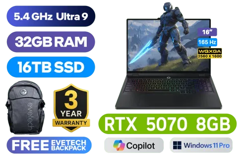 Lenovo Legion Pro 5 16IAX10 Intel® Core™ Ultra 9-275HX up to 5.4GHz Processor, 76MB Cache, 24x Cores, 24x Threads / 32GB DDR5 RAM / 16TB Ultra-Fast NVMe SSD / 16" WQXGA (2560x1600) 165Hz OLED Display / NVIDIA 50 Series GeForce RTX 5070 8GB GDDR7 Dedicated Graphics / <span style="font-size: 20px; color: #00BFFF; font-weight: bold;">Windows 11 Professional </span> / Intel WI-FI 7 Wireless LAN / Bluetooth 5.4 / 5.0MP Web Camera with E-shutter / 3 x USB Type-A / 2x USB-C (Thunderbolt™ 4, DisplayPort™ 2.1) / 1 x HDMI / 1x Headphone and Microphone Audio Combo Jack / 1 x RJ45 / RGB Backlit Keyboard / 2x 2W Stereo Speakers Audio by HARMAN / Lenovo Legion Pro 5 16IAX10 Intel® Core™ Ultra 9 RTX 5070 Gaming Laptop DealLenovo Legion Pro 5 16IAX10 Intel® Core™ Ultra 9-275HX up to 5.4GHz Processor, 76MB Cache, 24x Cores, 24x Threads / 32GB DDR5 RAM / 16TB Ultra-Fast NVMe SSD / 16" WQXGA (2560x1600) 165Hz OLED Display / NVIDIA 50 Series GeForce RTX 5070 8GB GDDR7 Dedicated Graphics / Windows 11 Professional / Intel WI-FI 7 Wireless LAN / Bluetooth 5.4 / 5.0MP Web Camera with E-shutter / 3 x USB Type-A / 2x USB-C (Thunderbolt™ 4, DisplayPort™ 2.1) / 1 x HDMI / 1x Headphone and Microphone Audio Combo Jack / 1 x RJ45 / RGB Backlit Keyboard / 2x 2W Stereo Speakers Audio by HARMAN / Lenovo Legion Pro 5 16IAX10 Intel® Core™ Ultra 9 RTX 5070 Gaming Laptop Deal [83F3006XSA/16TB] / 3 YEARS WARRANTY / [+] GET FREE EVETECH FLUX Premium Gaming Backpack / [+]Get Resident Evil: Requiem with select GeForce RTX 50 Series (Standard Edition)+ FREE DELIVERY !