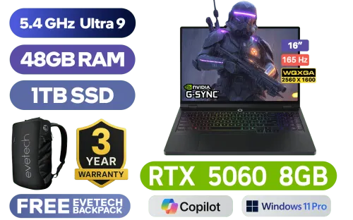 [G-SYNC] Lenovo Legion Pro 5 16IAX10H Intel® Core™ Ultra 9-275HX up to 5.4GHz Processor, 76MB Cache, 24x Cores, 24x Threads / 48GB DDR5 RAM / 1TB Ultra-Fast NVMe SSD / 16" WQXGA (2560x1600) 165Hz OLED Display / NVIDIA 50 Series GeForce RTX 5060 8GB GDDR7 Dedicated Graphics / <span style="font-size: 20px; color: #00BFFF; font-weight: bold;">Windows 11 Professional (64bit)</span> / RealTek WI-FI 7 8922AE Wireless LAN / Bluetooth 5.4 / 5.0MP Camera with E-shutter / 3 x USB Type-A / 2x USB-C (Thunderbolt™ 4, DisplayPort™ 2.1) / 1 x HDMI / 1x Headphone and Microphone Combo Jack / 1 x RJ45 / RGB Backlit Keyboard / 2x Stereo Speakers Audio by HARMAN / Lenovo Legion Pro 5 16IAX10 Intel® Core™ Ultra 9 RTX 5060 Gaming Laptop Deal[G-SYNC] Lenovo Legion Pro 5 16IAX10H Intel® Core™ Ultra 9-275HX up to 5.4GHz Processor, 76MB Cache, 24x Cores, 24x Threads / 48GB DDR5 RAM / 1TB Ultra-Fast NVMe SSD / 16" WQXGA (2560x1600) 165Hz OLED Display / NVIDIA 50 Series GeForce RTX 5060 8GB GDDR7 Dedicated Graphics / Windows 11 Professional (64bit) / RealTek WI-FI 7 8922AE Wireless LAN / Bluetooth 5.4 / 5.0MP Camera with E-shutter / 3 x USB Type-A / 2x USB-C (Thunderbolt™ 4, DisplayPort™ 2.1) / 1 x HDMI / 1x Headphone and Microphone Combo Jack / 1 x RJ45 / RGB Backlit Keyboard / 2x Stereo Speakers Audio by HARMAN / Lenovo Legion Pro 5 16IAX10 Intel® Core™ Ultra 9 RTX 5060 Gaming Laptop Deal [83F3006YSA/48GB] / 3 YEARS WARRANTY / [+] GET FREE EVETECH NEO Premium Gaming Backpack+ FREE DELIVERY !