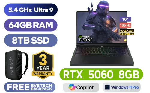 [G-SYNC] Lenovo Legion Pro 5 16IAX10H Intel® Core™ Ultra 9-275HX up to 5.4GHz Processor, 76MB Cache, 24x Cores, 24x Threads / 64GB DDR5 RAM / 8TB Ultra-Fast NVMe SSD / 16" WQXGA (2560x1600) 165Hz OLED Display / NVIDIA 50 Series GeForce RTX 5060 8GB GDDR7 Dedicated Graphics / <span style="font-size: 20px; color: #00BFFF; font-weight: bold;">Windows 11 Professional (64bit)</span> / RealTek WI-FI 7 8922AE Wireless LAN / Bluetooth 5.4 / 5.0MP Camera with E-shutter / 3 x USB Type-A / 2x USB-C (Thunderbolt™ 4, DisplayPort™ 2.1) / 1 x HDMI / 1x Headphone and Microphone Combo Jack / 1 x RJ45 / RGB Backlit Keyboard / 2x Stereo Speakers Audio by HARMAN / Lenovo Legion Pro 5 16IAX10 Intel® Core™ Ultra 9 RTX 5060 Gaming Laptop Deal[G-SYNC] Lenovo Legion Pro 5 16IAX10H Intel® Core™ Ultra 9-275HX up to 5.4GHz Processor, 76MB Cache, 24x Cores, 24x Threads / 64GB DDR5 RAM / 8TB Ultra-Fast NVMe SSD / 16" WQXGA (2560x1600) 165Hz OLED Display / NVIDIA 50 Series GeForce RTX 5060 8GB GDDR7 Dedicated Graphics / Windows 11 Professional (64bit) / RealTek WI-FI 7 8922AE Wireless LAN / Bluetooth 5.4 / 5.0MP Camera with E-shutter / 3 x USB Type-A / 2x USB-C (Thunderbolt™ 4, DisplayPort™ 2.1) / 1 x HDMI / 1x Headphone and Microphone Combo Jack / 1 x RJ45 / RGB Backlit Keyboard / 2x Stereo Speakers Audio by HARMAN / Lenovo Legion Pro 5 16IAX10 Intel® Core™ Ultra 9 RTX 5060 Gaming Laptop Deal [83F3006YSA/64GB/8TB] / 3 YEARS WARRANTY / [+] GET FREE EVETECH NEO Premium Gaming Backpack+ FREE DELIVERY !