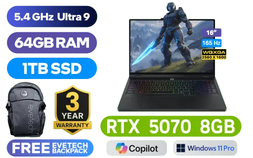 Lenovo Legion Pro 5 16IAX10 Intel® Core™ Ultra 9-275HX up to 5.4GHz Processor, 76MB Cache, 24x Cores, 24x Threads / 64GB DDR5 RAM / 1TB Ultra-Fast NVMe SSD / 16" WQXGA (2560x1600) 165Hz OLED Display / NVIDIA 50 Series GeForce RTX 5070 8GB GDDR7 Dedicated Graphics / <span style="font-size: 20px; color: #00BFFF; font-weight: bold;">Windows 11 Professional </span> / Intel WI-FI 7 Wireless LAN / Bluetooth 5.4 / 5.0MP Web Camera with E-shutter / 3 x USB Type-A / 2x USB-C (Thunderbolt™ 4, DisplayPort™ 2.1) / 1 x HDMI / 1x Headphone and Microphone Audio Combo Jack / 1 x RJ45 / RGB Backlit Keyboard / 2x 2W Stereo Speakers Audio by HARMAN / Lenovo Legion Pro 5 16IAX10 Intel® Core™ Ultra 9 RTX 5070 Gaming Laptop DealLenovo Legion Pro 5 16IAX10 Intel® Core™ Ultra 9-275HX up to 5.4GHz Processor, 76MB Cache, 24x Cores, 24x Threads / 64GB DDR5 RAM / 1TB Ultra-Fast NVMe SSD / 16" WQXGA (2560x1600) 165Hz OLED Display / NVIDIA 50 Series GeForce RTX 5070 8GB GDDR7 Dedicated Graphics / Windows 11 Professional / Intel WI-FI 7 Wireless LAN / Bluetooth 5.4 / 5.0MP Web Camera with E-shutter / 3 x USB Type-A / 2x USB-C (Thunderbolt™ 4, DisplayPort™ 2.1) / 1 x HDMI / 1x Headphone and Microphone Audio Combo Jack / 1 x RJ45 / RGB Backlit Keyboard / 2x 2W Stereo Speakers Audio by HARMAN / Lenovo Legion Pro 5 16IAX10 Intel® Core™ Ultra 9 RTX 5070 Gaming Laptop Deal [83F3006XSA/64GB] / 3 YEARS WARRANTY / [+] GET FREE EVETECH FLUX Premium Gaming Backpack / [+]Get Resident Evil: Requiem with select GeForce RTX 50 Series (Standard Edition)+ FREE DELIVERY !