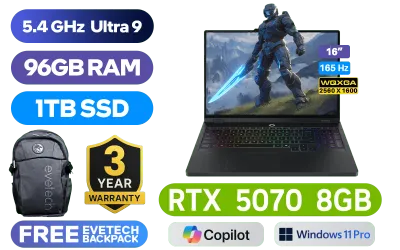 Lenovo Legion Pro 5 16IAX10 Intel® Core™ Ultra 9-275HX up to 5.4GHz Processor, 76MB Cache, 24x Cores, 24x Threads / 96GB DDR5 RAM / 1TB Ultra-Fast NVMe SSD / 16" WQXGA (2560x1600) 165Hz OLED Display / NVIDIA 50 Series GeForce RTX 5070 8GB GDDR7 Dedicated Graphics / <span style="font-size: 20px; color: #00BFFF; font-weight: bold;">Windows 11 Professional </span> / Intel WI-FI 7 Wireless LAN / Bluetooth 5.4 / 5.0MP Web Camera with E-shutter / 3 x USB Type-A / 2x USB-C (Thunderbolt™ 4, DisplayPort™ 2.1) / 1 x HDMI / 1x Headphone and Microphone Audio Combo Jack / 1 x RJ45 / RGB Backlit Keyboard / 2x 2W Stereo Speakers Audio by HARMAN / Lenovo Legion Pro 5 16IAX10 Intel® Core™ Ultra 9 RTX 5070 Gaming Laptop DealLenovo Legion Pro 5 16IAX10 Intel® Core™ Ultra 9-275HX up to 5.4GHz Processor, 76MB Cache, 24x Cores, 24x Threads / 96GB DDR5 RAM / 1TB Ultra-Fast NVMe SSD / 16" WQXGA (2560x1600) 165Hz OLED Display / NVIDIA 50 Series GeForce RTX 5070 8GB GDDR7 Dedicated Graphics / Windows 11 Professional / Intel WI-FI 7 Wireless LAN / Bluetooth 5.4 / 5.0MP Web Camera with E-shutter / 3 x USB Type-A / 2x USB-C (Thunderbolt™ 4, DisplayPort™ 2.1) / 1 x HDMI / 1x Headphone and Microphone Audio Combo Jack / 1 x RJ45 / RGB Backlit Keyboard / 2x 2W Stereo Speakers Audio by HARMAN / Lenovo Legion Pro 5 16IAX10 Intel® Core™ Ultra 9 RTX 5070 Gaming Laptop Deal [83F3006XSA/96GB] / 3 YEARS WARRANTY / [+] GET FREE Marvo WM111-BK Wireless Mouse / [+] GET FREE EVETECH FLUX Premium Gaming Backpack / [+]Get Resident Evil Requiem with select GeForce RTX 50 Series (Standard Edition)+ FREE DELIVERY !