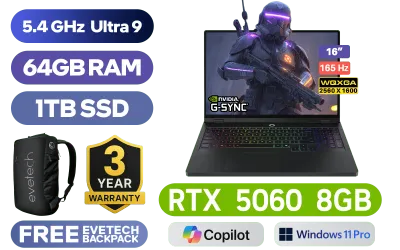 [G-SYNC] Lenovo Legion Pro 5 16IAX10H Intel® Core™ Ultra 9-275HX up to 5.4GHz Processor, 76MB Cache, 24x Cores, 24x Threads / 64GB DDR5 RAM / 1TB Ultra-Fast NVMe SSD / 16" WQXGA (2560x1600) 165Hz OLED Display / NVIDIA 50 Series GeForce RTX 5060 8GB GDDR7 Dedicated Graphics / <span style="font-size: 20px; color: #00BFFF; font-weight: bold;">Windows 11 Professional (64bit)</span> / RealTek WI-FI 7 8922AE Wireless LAN / Bluetooth 5.4 / 5.0MP Camera with E-shutter / 3 x USB Type-A / 2x USB-C (Thunderbolt™ 4, DisplayPort™ 2.1) / 1 x HDMI / 1x Headphone and Microphone Combo Jack / 1 x RJ45 / RGB Backlit Keyboard / 2x Stereo Speakers Audio by HARMAN / Lenovo Legion Pro 5 16IAX10 Intel® Core™ Ultra 9 RTX 5060 Gaming Laptop Deal[G-SYNC] Lenovo Legion Pro 5 16IAX10H Intel® Core™ Ultra 9-275HX up to 5.4GHz Processor, 76MB Cache, 24x Cores, 24x Threads / 64GB DDR5 RAM / 1TB Ultra-Fast NVMe SSD / 16" WQXGA (2560x1600) 165Hz OLED Display / NVIDIA 50 Series GeForce RTX 5060 8GB GDDR7 Dedicated Graphics / Windows 11 Professional (64bit) / RealTek WI-FI 7 8922AE Wireless LAN / Bluetooth 5.4 / 5.0MP Camera with E-shutter / 3 x USB Type-A / 2x USB-C (Thunderbolt™ 4, DisplayPort™ 2.1) / 1 x HDMI / 1x Headphone and Microphone Combo Jack / 1 x RJ45 / RGB Backlit Keyboard / 2x Stereo Speakers Audio by HARMAN / Lenovo Legion Pro 5 16IAX10 Intel® Core™ Ultra 9 RTX 5060 Gaming Laptop Deal [83F3006YSA/64GB] / 3 YEARS WARRANTY / [+] GET FREE EVETECH NEO Premium Gaming Backpack+ FREE DELIVERY !