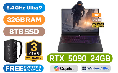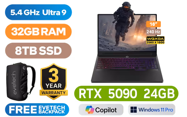 [G-SYNC] Lenovo Legion Pro 7 16IAX10H Intel® Core™ Ultra 9-275HX up to 5.4GHz Processor, 76MB Cache, 24x Cores, 24x Threads / 32GB DDR5 RAM / 8TB Ultra-Fast NVMe SSD / 16" WQXGA (2560x1600) 240Hz, OLED Display / NVIDIA 50 Series GeForce RTX 5090 24GB GDDR7 Dedicated Graphics / <span style="font-size: 20px; color: #00BFFF; font-weight: bold;">Windows 11 Professional (64bit)</span> / Intel WI-FI 7 BE200 Wireless LAN / Bluetooth 5.4 / 5.0MP Web Camera with E-shutter / 3 x USB Type-A / 2x USB-C (Thunderbolt™ 4, DisplayPort™ 2.1) / 1 x HDMI 2.1 / 1x Headphone and Microphone Combo Jack / 1 x RJ45 / RGB Backlit Keyboard / 4 stereo speakers with Nahimic Audio / Lenovo Legion Pro 7 16IAX10H Intel® Core™Ultra 9 RTX 5090 Gaming Laptop Deal[G-SYNC] Lenovo Legion Pro 7 16IAX10H Intel® Core™ Ultra 9-275HX up to 5.4GHz Processor, 76MB Cache, 24x Cores, 24x Threads / 32GB DDR5 RAM / 8TB Ultra-Fast NVMe SSD / 16" WQXGA (2560x1600) 240Hz, OLED Display / NVIDIA 50 Series GeForce RTX 5090 24GB GDDR7 Dedicated Graphics / Windows 11 Professional (64bit) / Intel WI-FI 7 BE200 Wireless LAN / Bluetooth 5.4 / 5.0MP Web Camera with E-shutter / 3 x USB Type-A / 2x USB-C (Thunderbolt™ 4, DisplayPort™ 2.1) / 1 x HDMI 2.1 / 1x Headphone and Microphone Combo Jack / 1 x RJ45 / RGB Backlit Keyboard / 4 stereo speakers with Nahimic Audio / Lenovo Legion Pro 7 16IAX10H Intel® Core™Ultra 9 RTX 5090 Gaming Laptop Deal [83F5006QSA/8TB] / [+] GET FREE EVETECH NEO Premium Gaming Backpack / 3 YEARS WARRANTY / [+] Get PRAGMATA with select GeForce RTX 50 Series + FREE DELIVERY !