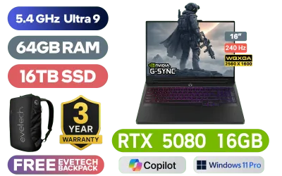 [G-SYNC] Lenovo Legion Pro 7 16IAX10H Intel® Core™ Ultra 9-275HX up to 5.4GHz Processor, 76MB Cache, 24x Cores, 24x Threads / 64GB DDR5 RAM / 16TB Ultra-Fast NVMe SSD / 16" WQXGA (2560x1600) 240Hz, OLED Display / NVIDIA 50 Series GeForce RTX 5080 16GB GDDR7 Dedicated Graphics / <span style="font-size: 20px; color: #00BFFF; font-weight: bold;">Windows 11 Professional (64bit)</span> / Intel WI-FI 7 BE200 Wireless LAN / Bluetooth 5.4 / 5.0MP Web Camera with E-shutter / 3 x USB Type-A / 2x USB-C (Thunderbolt™ 4, DisplayPort™ 2.1) / 1 x HDMI 2.1 / 1x Headphone and Microphone Combo Jack / 1 x RJ45 / RGB Backlit Keyboard / 4 Stereo Speakers with Nahimic Audio / Lenovo Legion Pro 7 16IAX10H Intel® Core™ Ultra 9 RTX 5080 Gaming Laptop Deal[G-SYNC] Lenovo Legion Pro 7 16IAX10H Intel® Core™ Ultra 9-275HX up to 5.4GHz Processor, 76MB Cache, 24x Cores, 24x Threads / 64GB DDR5 RAM / 16TB Ultra-Fast NVMe SSD / 16" WQXGA (2560x1600) 240Hz, OLED Display / NVIDIA 50 Series GeForce RTX 5080 16GB GDDR7 Dedicated Graphics / Windows 11 Professional (64bit) / Intel WI-FI 7 BE200 Wireless LAN / Bluetooth 5.4 / 5.0MP Web Camera with E-shutter / 3 x USB Type-A / 2x USB-C (Thunderbolt™ 4, DisplayPort™ 2.1) / 1 x HDMI 2.1 / 1x Headphone and Microphone Combo Jack / 1 x RJ45 / RGB Backlit Keyboard / 4 Stereo Speakers with Nahimic Audio / Lenovo Legion Pro 7 16IAX10H Intel® Core™ Ultra 9 RTX 5080 Gaming Laptop Deal [83F5006PSA/64GB/16TB] / [+] GET FREE EVETECH NEO Premium Gaming Backpack / 3 YEARS WARRANTY / [+]Get Resident Evil Requiem with select GeForce RTX 50 Series (Standard Edition)+ FREE DELIVERY !