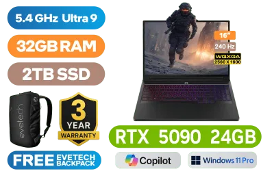 [G-SYNC] Lenovo Legion Pro 7 16IAX10H Intel® Core™ Ultra 9-275HX up to 5.4GHz Processor, 76MB Cache, 24x Cores, 24x Threads / 32GB DDR5 RAM / 2TB Ultra-Fast NVMe SSD / 16" WQXGA (2560x1600) 240Hz, OLED Display / NVIDIA 50 Series GeForce RTX 5090 24GB GDDR7 Dedicated Graphics / <span style="font-size: 20px; color: #00BFFF; font-weight: bold;">Windows 11 Professional (64bit)</span> / Intel WI-FI 7 BE200 Wireless LAN / Bluetooth 5.4 / 5.0MP Web Camera with E-shutter / 3 x USB Type-A / 2x USB-C (Thunderbolt™ 4, DisplayPort™ 2.1) / 1 x HDMI 2.1 / 1x Headphone and Microphone Combo Jack / 1 x RJ45 / RGB Backlit Keyboard / 4 stereo speakers with Nahimic Audio / Lenovo Legion Pro 7 16IAX10H Intel® Core™Ultra 9 RTX 5090 Gaming Laptop Deal[G-SYNC] Lenovo Legion Pro 7 16IAX10H Intel® Core™ Ultra 9-275HX up to 5.4GHz Processor, 76MB Cache, 24x Cores, 24x Threads / 32GB DDR5 RAM / 2TB Ultra-Fast NVMe SSD / 16" WQXGA (2560x1600) 240Hz, OLED Display / NVIDIA 50 Series GeForce RTX 5090 24GB GDDR7 Dedicated Graphics / Windows 11 Professional (64bit) / Intel WI-FI 7 BE200 Wireless LAN / Bluetooth 5.4 / 5.0MP Web Camera with E-shutter / 3 x USB Type-A / 2x USB-C (Thunderbolt™ 4, DisplayPort™ 2.1) / 1 x HDMI 2.1 / 1x Headphone and Microphone Combo Jack / 1 x RJ45 / RGB Backlit Keyboard / 4 stereo speakers with Nahimic Audio / Lenovo Legion Pro 7 16IAX10H Intel® Core™Ultra 9 RTX 5090 Gaming Laptop Deal [83F5006QSA/2TB] / [+] GET FREE EVETECH NEO Premium Gaming Backpack / 3 YEARS WARRANTY / [+]Get Resident Evil Requiem with select GeForce RTX 50 Series (Standard Edition)+ FREE DELIVERY !