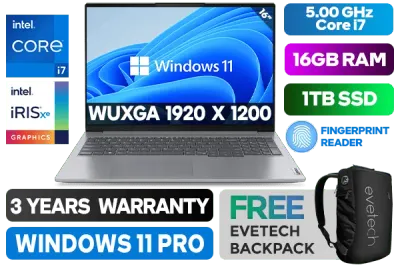 Lenovo ThinkPad 16 G6 IRL 21KH0053SA 13th Gen Intel Core i7-13700H up to 5.00GHz Processor, 24MB Cache, 14x Cores, 20x Threads / 16GB DDR5 memory / 1TB Ultra-Fast NVME SSD / 16" WUXGA 1920 x 1200 Anti-Glare IPS-Level Display / Integrated Intel® Iris® Xe Graphics / <span style="font-size: 20px; color: #00BFFF; font-weight: bold;">Windows 11 Professional (64bit)</span> / HD 720p with Privacy Shutter / Intel Wi-Fi 6 Wireless LAN / Bluetooth 5.2 / 2x USB 3.2 Type-A / 2x USB Type-C Thunderbolt™ 4 (support data transfer, Power Delivery 3.0 and DisplayPort™ 1.4) / 1x HDMI / Headphone Audio & Microphone Combo Jack / 1x Ethernet (RJ-45) / 1x SD Card Reader / 2x 2W Speaker With Dolby Audio / Fingerprint Reader / Lenovo ThinkPad 16 G6 IRL Core i7 Laptop DealLenovo ThinkPad 16 G6 IRL 21KH0053SA 13th Gen Intel Core i7-13700H up to 5.00GHz Processor, 24MB Cache, 14x Cores, 20x Threads / 16GB DDR5 memory / 1TB Ultra-Fast NVME SSD / 16" WUXGA 1920 x 1200 Anti-Glare IPS-Level Display / Integrated Intel® Iris® Xe Graphics / Windows 11 Professional (64bit) / HD 720p with Privacy Shutter / Intel Wi-Fi 6 Wireless LAN / Bluetooth 5.2 / 2x USB 3.2 Type-A / 2x USB Type-C Thunderbolt™ 4 (support data transfer, Power Delivery 3.0 and DisplayPort™ 1.4) / 1x HDMI / Headphone Audio & Microphone Combo Jack / 1x Ethernet (RJ-45) / 1x SD Card Reader / 2x 2W Speaker With Dolby Audio / Fingerprint Reader / Lenovo ThinkPad 16 G6 IRL Core i7 Laptop Deal [21KH0053SA/1TB] / 3 YEARS WARRANTY / [+] GET FREE EVETECH NEO Premium Gaming Backpack+ FREE DELIVERY !
