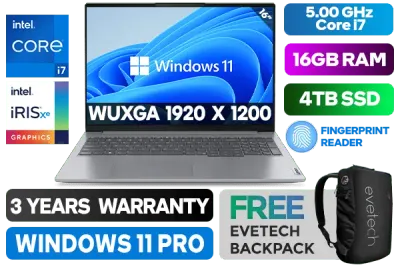 Lenovo ThinkPad 16 G6 IRL 21KH0053SA 13th Gen Intel Core i7-13700H up to 5.00GHz Processor, 24MB Cache, 14x Cores, 20x Threads / 16GB DDR5 memory / 4TB Ultra-Fast NVME SSD / 16" WUXGA 1920 x 1200 Anti-Glare IPS-Level Display / Integrated Intel® Iris® Xe Graphics / <span style="font-size: 20px; color: #00BFFF; font-weight: bold;">Windows 11 Professional (64bit)</span> / HD 720p with Privacy Shutter / Intel Wi-Fi 6 Wireless LAN / Bluetooth 5.2 / 2x USB 3.2 Type-A / 2x USB Type-C Thunderbolt™ 4 (support data transfer, Power Delivery 3.0 and DisplayPort™ 1.4) / 1x HDMI / Headphone Audio & Microphone Combo Jack / 1x Ethernet (RJ-45) / 1x SD Card Reader / 2x 2W Speaker With Dolby Audio / Fingerprint Reader / Lenovo ThinkPad 16 G6 IRL Core i7 Laptop DealLenovo ThinkPad 16 G6 IRL 21KH0053SA 13th Gen Intel Core i7-13700H up to 5.00GHz Processor, 24MB Cache, 14x Cores, 20x Threads / 16GB DDR5 memory / 4TB Ultra-Fast NVME SSD / 16" WUXGA 1920 x 1200 Anti-Glare IPS-Level Display / Integrated Intel® Iris® Xe Graphics / Windows 11 Professional (64bit) / HD 720p with Privacy Shutter / Intel Wi-Fi 6 Wireless LAN / Bluetooth 5.2 / 2x USB 3.2 Type-A / 2x USB Type-C Thunderbolt™ 4 (support data transfer, Power Delivery 3.0 and DisplayPort™ 1.4) / 1x HDMI / Headphone Audio & Microphone Combo Jack / 1x Ethernet (RJ-45) / 1x SD Card Reader / 2x 2W Speaker With Dolby Audio / Fingerprint Reader / Lenovo ThinkPad 16 G6 IRL Core i7 Laptop Deal [21KH0053SA/4TB] / 3 YEARS WARRANTY / [+] GET FREE EVETECH NEO Premium Gaming Backpack+ FREE DELIVERY !