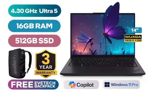 Lenovo ThinkPad L14 Gen 5 Intel Core Ultra 5-125U up to 4.30GHz Processor, 12MB Cache, 12x Cores, 14x Threads / 16GB DDR5 RAM / 512GB Ultra-Fast NVME SSD / 14” WUXGA (1920 x 1200) Anti-Glare IPS-Level Display / Integrated Intel Graphics / <span style="font-size: 20px; color: #00BFFF; font-weight: bold;">Windows 11 Professional (64bit)</span> / Intel Wi-Fi 6E AX211 Wireless LAN / Bluetooth 5.3 / 720p HD Webcam with Privacy Shutter / 3x USB Type-A / 2x USB Type-C (Thuderbolt 4) / 1x HDMI / 1x RJ45 Port / 1x Headphone Audio & Microphone Combo Jack / 1x Sim Slot / Spill-Resistant Keyboard / 2x Speakers with Dolby Audio / Lenovo ThinkPad L14 Gen 5 Core Ultra 5 Laptop DealLenovo ThinkPad L14 Gen 5 Intel Core Ultra 5-125U up to 4.30GHz Processor, 12MB Cache, 12x Cores, 14x Threads / 16GB DDR5 RAM / 512GB Ultra-Fast NVME SSD / 14” WUXGA (1920 x 1200) Anti-Glare IPS-Level Display / Integrated Intel Graphics / Windows 11 Professional (64bit) / Intel Wi-Fi 6E AX211 Wireless LAN / Bluetooth 5.3 / 720p HD Webcam with Privacy Shutter / 3x USB Type-A / 2x USB Type-C (Thuderbolt 4) / 1x HDMI / 1x RJ45 Port / 1x Headphone Audio & Microphone Combo Jack / 1x Sim Slot / Spill-Resistant Keyboard / 2x Speakers with Dolby Audio / Lenovo ThinkPad L14 Gen 5 Core Ultra 5 Laptop Deal [21L2S7SL00] / [+] GET FREE EVETECH NEO Premium Gaming Backpack / 3 YEARS WARRANTY + FREE DELIVERY !