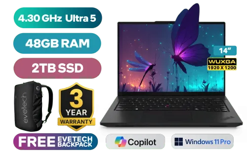 Lenovo ThinkPad L14 Gen 5 Intel Core Ultra 5-125U up to 4.30GHz Processor, 12MB Cache, 12x Cores, 14x Threads / 48GB DDR5 RAM / 2TB Ultra-Fast NVME SSD / 14” WUXGA (1920 x 1200) Anti-Glare IPS-Level Display / Integrated Intel Graphics / <span style="font-size: 20px; color: #00BFFF; font-weight: bold;">Windows 11 Professional (64bit)</span> / Intel Wi-Fi 6E AX211 Wireless LAN / Bluetooth 5.3 / 720p HD Webcam with Privacy Shutter / 3x USB Type-A / 2x USB Type-C (Thuderbolt 4) / 1x HDMI / 1x RJ45 Port / 1x Headphone Audio & Microphone Combo Jack / 1x Sim Slot / Spill-Resistant Keyboard / 2x Speakers with Dolby Audio / Lenovo ThinkPad L14 Gen 5 Core Ultra 5 Laptop DealLenovo ThinkPad L14 Gen 5 Intel Core Ultra 5-125U up to 4.30GHz Processor, 12MB Cache, 12x Cores, 14x Threads / 48GB DDR5 RAM / 2TB Ultra-Fast NVME SSD / 14” WUXGA (1920 x 1200) Anti-Glare IPS-Level Display / Integrated Intel Graphics / Windows 11 Professional (64bit) / Intel Wi-Fi 6E AX211 Wireless LAN / Bluetooth 5.3 / 720p HD Webcam with Privacy Shutter / 3x USB Type-A / 2x USB Type-C (Thuderbolt 4) / 1x HDMI / 1x RJ45 Port / 1x Headphone Audio & Microphone Combo Jack / 1x Sim Slot / Spill-Resistant Keyboard / 2x Speakers with Dolby Audio / Lenovo ThinkPad L14 Gen 5 Core Ultra 5 Laptop Deal [21L2S7SL00/48GB/2TB] / [+] GET FREE EVETECH NEO Premium Gaming Backpack / 3 YEARS WARRANTY + FREE DELIVERY !