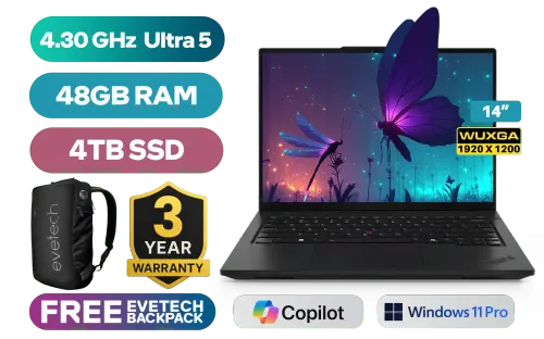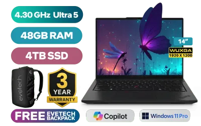 Lenovo ThinkPad L14 Gen 5 Intel Core Ultra 5-125U up to 4.30GHz Processor, 12MB Cache, 12x Cores, 14x Threads / 48GB DDR5 RAM / 4TB Ultra-Fast NVME SSD / 14” WUXGA (1920 x 1200) Anti-Glare IPS-Level Display / Integrated Intel Graphics / <span style="font-size: 20px; color: #00BFFF; font-weight: bold;">Windows 11 Professional (64bit)</span> / Intel Wi-Fi 6E AX211 Wireless LAN / Bluetooth 5.3 / 720p HD Webcam with Privacy Shutter / 3x USB Type-A / 2x USB Type-C (Thuderbolt 4) / 1x HDMI / 1x RJ45 Port / 1x Headphone Audio & Microphone Combo Jack / 1x Sim Slot / Spill-Resistant Keyboard / 2x Speakers with Dolby Audio / Lenovo ThinkPad L14 Gen 5 Core Ultra 5 Laptop DealLenovo ThinkPad L14 Gen 5 Intel Core Ultra 5-125U up to 4.30GHz Processor, 12MB Cache, 12x Cores, 14x Threads / 48GB DDR5 RAM / 4TB Ultra-Fast NVME SSD / 14” WUXGA (1920 x 1200) Anti-Glare IPS-Level Display / Integrated Intel Graphics / Windows 11 Professional (64bit) / Intel Wi-Fi 6E AX211 Wireless LAN / Bluetooth 5.3 / 720p HD Webcam with Privacy Shutter / 3x USB Type-A / 2x USB Type-C (Thuderbolt 4) / 1x HDMI / 1x RJ45 Port / 1x Headphone Audio & Microphone Combo Jack / 1x Sim Slot / Spill-Resistant Keyboard / 2x Speakers with Dolby Audio / Lenovo ThinkPad L14 Gen 5 Core Ultra 5 Laptop Deal [21L2S7SL00/48GB/4TB] / [+] GET FREE EVETECH NEO Premium Gaming Backpack / 3 YEARS WARRANTY + FREE DELIVERY !