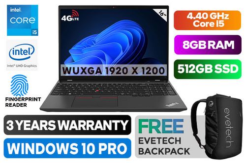[<span style="color:#ea0303; font-weight:bold;">4G LTE</span>] Lenovo ThinkPad T16 Gen 1 21BV005EZA 12th Gen Intel Core i5-1235U up to 4.40GHz Processor, 12MB Cache, 10x Cores, 12x Threads / 8GB DDR4 RAM / 512GB Ultra-Fast NVME SSD / 16" WUXGA 1920x1200 Anti-Glare IPS-Level Display / Integrated Intel UHD Graphics / No DVD Drive Included / <span style="color:red; font-size:18px;">Windows 10 Professional (64bit)</span> / HD 720P Webcam With Array Microphone / Bluetooth 5.1 / Dual Band Intel AX211 Wi-Fi 6E Wireless LAN / 2x 2W Speaker With Dolby Audio / Headphone Audio & Microphone Combo Jack / 2x USB 3.2 Type-A / 2x USB 4 Type-C Thunderbolt™ 4 ((support data transfer, Power Delivery 3.0 and DisplayPort™ 1.4) / 1x HDMI / 1x Ethernet (RJ-45) / 1x Smart Card Reader + 1x Nano-SIM Card Slot / White-backlit Keyboard / <span style="color:green; font-size: 20px;">Fingerprint Reader</span> / Lenovo ThinkPad T16 Gen 1 Core i5 Laptop Deal[4G LTE] Lenovo ThinkPad T16 Gen 1 21BV005EZA 12th Gen Intel Core i5-1235U up to 4.40GHz Processor, 12MB Cache, 10x Cores, 12x Threads / 8GB DDR4 RAM / 512GB Ultra-Fast NVME SSD / 16" WUXGA 1920x1200 Anti-Glare IPS-Level Display / Integrated Intel UHD Graphics / No DVD Drive Included / Windows 10 Professional (64bit) / HD 720P Webcam With Array Microphone / Bluetooth 5.1 / Dual Band Intel AX211 Wi-Fi 6E Wireless LAN / 2x 2W Speaker With Dolby Audio / Headphone Audio & Microphone Combo Jack / 2x USB 3.2 Type-A / 2x USB 4 Type-C Thunderbolt™ 4 ((support data transfer, Power Delivery 3.0 and DisplayPort™ 1.4) / 1x HDMI / 1x Ethernet (RJ-45) / 1x Smart Card Reader + 1x Nano-SIM Card Slot / White-backlit Keyboard / Fingerprint Reader / Lenovo ThinkPad T16 Gen 1 Core i5 Laptop Deal [21BV005EZA] / 3 YEARS WARRANTY / [+] GET FREE EVETECH NEO Premium Gaming Backpack+ FREE DELIVERY !
