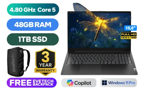 Lenovo V15 G5 IRL Intel Core 5-210H up to 4.80GHz Processor, 12MB Cache, 8x Cores, 12x Threads / 48GB DDR5 RAM / 1TB Ultra-Fast NVMe SSD / 15.6" FHD (1920 x 1080) Anti-Glare Display / Integrated Intel™ Graphics / <span style="font-size: 20px; color: #00BFFF; font-weight: bold;">Windows 11 Professional </span> / Intel Wi-Fi 6 AX203 Wireless LAN / Bluetooth 5.2 / 720p HD Camera with Privacy Shutter / 2x USB Type-A / 1x USB Type-C (DisplayPort 1.2 / Power Delivery) / 1x HDMI / 1x Headphone and Microphone Combo Jack / 1x RJ45 / 1x Kensington Lock / 2x Stereo Speakers / Lenovo V15 G5 IRL Intel Core 5 Laptop DealLenovo V15 G5 IRL Intel Core 5-210H up to 4.80GHz Processor, 12MB Cache, 8x Cores, 12x Threads / 48GB DDR5 RAM / 1TB Ultra-Fast NVMe SSD / 15.6" FHD (1920 x 1080) Anti-Glare Display / Integrated Intel™ Graphics / Windows 11 Professional / Intel Wi-Fi 6 AX203 Wireless LAN / Bluetooth 5.2 / 720p HD Camera with Privacy Shutter / 2x USB Type-A / 1x USB Type-C (DisplayPort 1.2 / Power Delivery) / 1x HDMI / 1x Headphone and Microphone Combo Jack / 1x RJ45 / 1x Kensington Lock / 2x Stereo Speakers / Lenovo V15 G5 IRL Intel Core 5 Laptop Deal [83GWA02DZA/48GB/1TB] / [+] GET FREE EVETECH NEO Premium Gaming Backpack+ FREE DELIVERY !