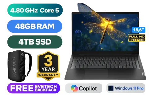 Lenovo V15 G5 IRL Intel Core 5-210H up to 4.80GHz Processor, 12MB Cache, 8x Cores, 12x Threads / 48GB DDR5 RAM / 4TB Ultra-Fast NVMe SSD / 15.6" FHD (1920 x 1080) Anti-Glare Display / Integrated Intel™ Graphics / <span style="font-size: 20px; color: #00BFFF; font-weight: bold;">Windows 11 Professional </span> / Intel Wi-Fi 6 AX203 Wireless LAN / Bluetooth 5.2 / 720p HD Camera with Privacy Shutter / 2x USB Type-A / 1x USB Type-C (DisplayPort 1.2 / Power Delivery) / 1x HDMI / 1x Headphone and Microphone Combo Jack / 1x RJ45 / 1x Kensington Lock / 2x Stereo Speakers / Lenovo V15 G5 IRL Intel Core 5 Laptop DealLenovo V15 G5 IRL Intel Core 5-210H up to 4.80GHz Processor, 12MB Cache, 8x Cores, 12x Threads / 48GB DDR5 RAM / 4TB Ultra-Fast NVMe SSD / 15.6" FHD (1920 x 1080) Anti-Glare Display / Integrated Intel™ Graphics / Windows 11 Professional / Intel Wi-Fi 6 AX203 Wireless LAN / Bluetooth 5.2 / 720p HD Camera with Privacy Shutter / 2x USB Type-A / 1x USB Type-C (DisplayPort 1.2 / Power Delivery) / 1x HDMI / 1x Headphone and Microphone Combo Jack / 1x RJ45 / 1x Kensington Lock / 2x Stereo Speakers / Lenovo V15 G5 IRL Intel Core 5 Laptop Deal [83GWA02DZA/48GB/4TB] / [+] GET FREE EVETECH NEO Premium Gaming Backpack+ FREE DELIVERY !