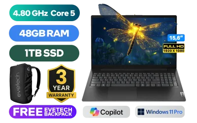 Lenovo V15 G5 IRL Intel Core 5-210H up to 4.80GHz Processor, 12MB Cache, 8x Cores, 12x Threads / 48GB DDR5 RAM / 1TB Ultra-Fast NVMe SSD / 15.6" FHD (1920 x 1080) Anti-Glare Display / Integrated Intel™ Graphics / <span style="font-size: 20px; color: #00BFFF; font-weight: bold;">Windows 11 Professional </span> / Intel Wi-Fi 6 AX203 Wireless LAN / Bluetooth 5.2 / 720p HD Camera with Privacy Shutter / 2x USB Type-A / 1x USB Type-C (DisplayPort 1.2 / Power Delivery) / 1x HDMI / 1x Headphone and Microphone Combo Jack / 1x RJ45 / 1x Kensington Lock / 2x Stereo Speakers / Lenovo V15 G5 IRL Intel Core 5 Laptop DealLenovo V15 G5 IRL Intel Core 5-210H up to 4.80GHz Processor, 12MB Cache, 8x Cores, 12x Threads / 48GB DDR5 RAM / 1TB Ultra-Fast NVMe SSD / 15.6" FHD (1920 x 1080) Anti-Glare Display / Integrated Intel™ Graphics / Windows 11 Professional / Intel Wi-Fi 6 AX203 Wireless LAN / Bluetooth 5.2 / 720p HD Camera with Privacy Shutter / 2x USB Type-A / 1x USB Type-C (DisplayPort 1.2 / Power Delivery) / 1x HDMI / 1x Headphone and Microphone Combo Jack / 1x RJ45 / 1x Kensington Lock / 2x Stereo Speakers / Lenovo V15 G5 IRL Intel Core 5 Laptop Deal [83GWA02DZA/48GB/1TB] / [+] GET FREE EVETECH NEO Premium Gaming Backpack+ FREE DELIVERY !