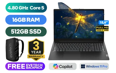 Lenovo V15 G5 IRL Intel Core 5-210H up to 4.80GHz Processor, 12MB Cache, 8x Cores, 12x Threads / 16GB DDR5 RAM / 512GB Ultra-Fast NVMe SSD / 15.6" FHD (1920 x 1080) Anti-Glare Display / Integrated Intel™ Graphics / <span style="font-size: 20px; color: #00BFFF; font-weight: bold;">Windows 11 Professional </span> / Intel Wi-Fi 6 AX203 Wireless LAN / Bluetooth 5.2 / 720p HD Camera with Privacy Shutter / 2x USB Type-A / 1x USB Type-C (DisplayPort 1.2 / Power Delivery) / 1x HDMI / 1x Headphone and Microphone Combo Jack / 1x RJ45 / 1x Kensington Lock / 2x Stereo Speakers / Lenovo V15 G5 IRL Intel Core 5 Laptop DealLenovo V15 G5 IRL Intel Core 5-210H up to 4.80GHz Processor, 12MB Cache, 8x Cores, 12x Threads / 16GB DDR5 RAM / 512GB Ultra-Fast NVMe SSD / 15.6" FHD (1920 x 1080) Anti-Glare Display / Integrated Intel™ Graphics / Windows 11 Professional / Intel Wi-Fi 6 AX203 Wireless LAN / Bluetooth 5.2 / 720p HD Camera with Privacy Shutter / 2x USB Type-A / 1x USB Type-C (DisplayPort 1.2 / Power Delivery) / 1x HDMI / 1x Headphone and Microphone Combo Jack / 1x RJ45 / 1x Kensington Lock / 2x Stereo Speakers / Lenovo V15 G5 IRL Intel Core 5 Laptop Deal [83GWA02DZA] / [+] GET FREE EVETECH NEO Premium Gaming Backpack+ FREE DELIVERY !