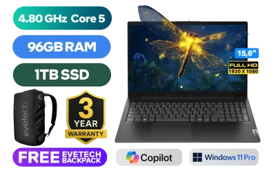 Lenovo V15 G5 IRL Intel Core 5-210H up to 4.80GHz Processor, 12MB Cache, 8x Cores, 12x Threads / 96GB DDR5 RAM / 1TB Ultra-Fast NVMe SSD / 15.6" FHD (1920 x 1080) Anti-Glare Display / Integrated Intel™ Graphics / <span style="font-size: 20px; color: #00BFFF; font-weight: bold;">Windows 11 Professional </span> / Intel Wi-Fi 6 AX203 Wireless LAN / Bluetooth 5.2 / 720p HD Camera with Privacy Shutter / 2x USB Type-A / 1x USB Type-C (DisplayPort 1.2 / Power Delivery) / 1x HDMI / 1x Headphone and Microphone Combo Jack / 1x RJ45 / 1x Kensington Lock / 2x Stereo Speakers / Lenovo V15 G5 IRL Intel Core 5 Laptop DealLenovo V15 G5 IRL Intel Core 5-210H up to 4.80GHz Processor, 12MB Cache, 8x Cores, 12x Threads / 96GB DDR5 RAM / 1TB Ultra-Fast NVMe SSD / 15.6" FHD (1920 x 1080) Anti-Glare Display / Integrated Intel™ Graphics / Windows 11 Professional / Intel Wi-Fi 6 AX203 Wireless LAN / Bluetooth 5.2 / 720p HD Camera with Privacy Shutter / 2x USB Type-A / 1x USB Type-C (DisplayPort 1.2 / Power Delivery) / 1x HDMI / 1x Headphone and Microphone Combo Jack / 1x RJ45 / 1x Kensington Lock / 2x Stereo Speakers / Lenovo V15 G5 IRL Intel Core 5 Laptop Deal [83GWA02DZA/96GB/1TB] / [+] GET FREE EVETECH NEO Premium Gaming Backpack+ FREE DELIVERY !