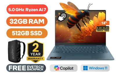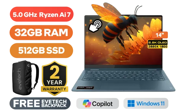 [TOUCHSCREEN] Lenovo Yoga 7 2-In-1 14AKP10 AMD Ryzen AI 7-350 up to 5.0GHz Processor, 24MB Cache, 8x Cores, 16x Threads / 32GB LPDDR5X RAM / 512GB Ultra-fast NVMe SSD / 14” 2.8K (2880x1800) OLED Touchscreen Display / Integrated Radeon Graphics / Windows 11 Home (64bit) / RealTek Wi-Fi 7 BE200 Wireless LAN / Bluetooth 5.4 / 5.0MP IR Camera With Privacy shutter / 1x USB Type-A / 2x USB Type-C (Supports DisplayPort / Power Delivery) / 1x HDMI / 1x Headphone and Microphone Combo Jack / 1x MicroSD Card Reader / White Backlit Keyboard / 4 Stereo Speakers Optimized with Dolby Atmos Audio / Free Lenovo® Yoga® 14" Sleeve / Free Lenovo® Digital Pen / 2 Years Warranty / Lenovo Yoga 7 14AKP10 Ryzen AI 7 Touchscreen Laptop Deal[TOUCHSCREEN] Lenovo Yoga 7 2-In-1 14AKP10 AMD Ryzen AI 7-350 up to 5.0GHz Processor, 24MB Cache, 8x Cores, 16x Threads / 32GB LPDDR5X RAM / 512GB Ultra-fast NVMe SSD / 14” 2.8K (2880x1800) OLED Touchscreen Display / Integrated Radeon Graphics / Windows 11 Home (64bit) / RealTek Wi-Fi 7 BE200 Wireless LAN / Bluetooth 5.4 / 5.0MP IR Camera With Privacy shutter / 1x USB Type-A / 2x USB Type-C (Supports DisplayPort / Power Delivery) / 1x HDMI / 1x Headphone and Microphone Combo Jack / 1x MicroSD Card Reader / White Backlit Keyboard / 4 Stereo Speakers Optimized with Dolby Atmos Audio / Free Lenovo® Yoga® 14" Sleeve / Free Lenovo® Digital Pen / 2 Years Warranty / Lenovo Yoga 7 14AKP10 Ryzen AI 7 Touchscreen Laptop Deal [83JR004NSA] + FREE DELIVERY !