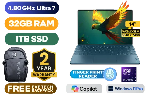 [TOUCHSCREEN] Lenovo Yoga Slim 9 14ILL10 Intel Core Ultra 7 258V up to 4.80GHz Processor, 12MB Cache, 8x Cores, 8x Threads / 32GB Memory / 1TB Ultra-fast NVMe SSD / 14” 4K WQUXGA (3840x2400) OLED Display / Integrated Intel® Arc™ 140V Graphics / <span style="font-size: 20px; color: #00BFFF; font-weight: bold;">Windows 11 Professional (64bit)</span> / FHD 1080p Web Camera with E-shutter / White Backlit Keyboard / Fingerprint Reader / Bluetooth 5.4 / Wi-Fi 7 BE201 Wireless LAN / 4x Dolby Atmos™ speaker system / 2 x USB Type-C (Thunderbolt™ 4 / USB4® 40Gbps), with USB PD 3.0 and DisplayPort™ 2.1) / FREE Lenovo USB Type-C Adapter + Lenovo Yoga Sleeve + Lenovo TWS Yoga Wireless Ear Buds / 2 Year Warranty / Lenovo Yoga Slim 9 Ultra 7 Touchscreen Laptop Deal[TOUCHSCREEN] Lenovo Yoga Slim 9 14ILL10 Intel Core Ultra 7 258V up to 4.80GHz Processor, 12MB Cache, 8x Cores, 8x Threads / 32GB Memory / 1TB Ultra-fast NVMe SSD / 14” 4K WQUXGA (3840x2400) OLED Display / Integrated Intel® Arc™ 140V Graphics / Windows 11 Professional (64bit) / FHD 1080p Web Camera with E-shutter / White Backlit Keyboard / Fingerprint Reader / Bluetooth 5.4 / Wi-Fi 7 BE201 Wireless LAN / 4x Dolby Atmos™ speaker system / 2 x USB Type-C (Thunderbolt™ 4 / USB4® 40Gbps), with USB PD 3.0 and DisplayPort™ 2.1) / FREE Lenovo USB Type-C Adapter + Lenovo Yoga Sleeve + Lenovo TWS Yoga Wireless Ear Buds / 2 Year Warranty / Lenovo Yoga Slim 9 Ultra 7 Touchscreen Laptop Deal [83CX0022SA] / [+] GET FREE EVETECH FLUX Premium Gaming Backpack+ FREE DELIVERY !