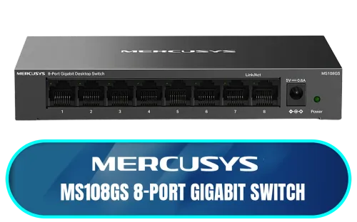 MERCUSYS MS108GS 8-Port Gigabit Desktop Switch / 8x 10/100/1000Mbps RJ45 Ports / Auto MDI/MDIX / Steel Housing for Desktop or Wall-Mount / Metal Casing / Plug & Play / Green Ethernet Power Saving / MS108GS