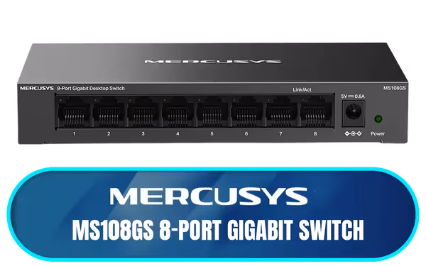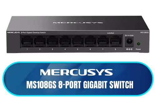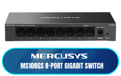 MERCUSYS MS108GS 8-Port Gigabit Desktop Switch / 8x 10/100/1000Mbps RJ45 Ports / Auto MDI/MDIX / Steel Housing for Desktop or Wall-Mount / Metal Casing / Plug & Play / Green Ethernet Power Saving / MS108GS