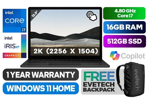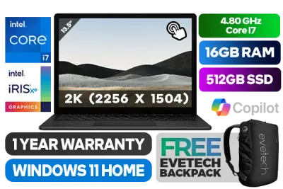 TOUCHSCREEN Microsoft Surface 4 11th Gen Intel Core i7-1185G7 up to 4.80GHz Processor, 12MB Cache, 4x Cores, 8x Threads / 16GB LPDDR4X RAM / 512GB Ultra-Fast NVME SSD / 13.5" 2K (2256 x 1504) PixelSense™ Touch Display / Intel® Iris® Xe Graphics / Windows 11 Home 64bit / WiFi 6 802.11ax Wireless LAN / Bluetooth 5.0 / 720p HD front-facing camera / Windows Hello Face Authentication camera / 1 x USB Type-A / 1 x USB Type-C / 1x Headphone Audio & Microphone Combo Jack / Dual far-field studio microphones / 1 Year Warranty / Microsoft Surface 4 Intel Core i7 Laptop DealTOUCHSCREEN Microsoft Surface 4 11th Gen Intel Core i7-1185G7 up to 4.80GHz Processor, 12MB Cache, 4x Cores, 8x Threads / 16GB LPDDR4X RAM / 512GB Ultra-Fast NVME SSD / 13.5" 2K (2256 x 1504) PixelSense™ Touch Display / Intel® Iris® Xe Graphics / Windows 11 Home 64bit / WiFi 6 802.11ax Wireless LAN / Bluetooth 5.0 / 720p HD front-facing camera / Windows Hello Face Authentication camera / 1 x USB Type-A / 1 x USB Type-C / 1x Headphone Audio & Microphone Combo Jack / Dual far-field studio microphones / 1 Year Warranty / Microsoft Surface 4 Intel Core i7 Laptop Deal [5EB-00139] / [+] GET FREE EVETECH NEO Premium Gaming Backpack+ FREE DELIVERY !