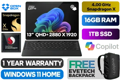[Open Box Refurbished Laptop] [TOUCHSCREEN] Microsoft Surface Pro 11 Qualcomm® Snapdragon X Elite up to 4.00GHz Processor, 42MB Cache, 12x Cores / 16GB LPDDR5X RAM / 1TB Ultra-Fast NVME SSD / 13-inch QHD+ (2880 x 1920) PixelSense™ 120Hz Flow Touch Display / Integrated Qualcomm Adreno Graphics / Windows 11 Home 64bit / Surface Pro Wi-Fi 7 / Bluetooth 5.4 / 2 x USB Type-C with Thunderbolt™ 4 / 1 x Surface Connect port / 1 x Surface Pro Keyboard port / Dual studio microphones / Front-Facing Camera With 1440p full HD video / 10.0MP Ultra HD Rear-Facing Camera / Free Surface Type Cover / 6 Months Warranty / Microsoft Surface Pro 11 Snapdragon X Elite 2-in-1 Laptop Tablet Deal[Open Box Refurbished Laptop] [TOUCHSCREEN] Microsoft Surface Pro 11 Qualcomm® Snapdragon X Elite up to 4.00GHz Processor, 42MB Cache, 12x Cores / 16GB LPDDR5X RAM / 1TB Ultra-Fast NVME SSD / 13-inch QHD+ (2880 x 1920) PixelSense™ 120Hz Flow Touch Display / Integrated Qualcomm Adreno Graphics / Windows 11 Home 64bit / Surface Pro Wi-Fi 7 / Bluetooth 5.4 / 2 x USB Type-C with Thunderbolt™ 4 / 1 x Surface Connect port / 1 x Surface Pro Keyboard port / Dual studio microphones / Front-Facing Camera With 1440p full HD video / 10.0MP Ultra HD Rear-Facing Camera / Free Surface Type Cover / 6 Months Warranty / Microsoft Surface Pro 11 Snapdragon X Elite 2-in-1 Laptop Tablet Deal [GP37526] + FREE DELIVERY !