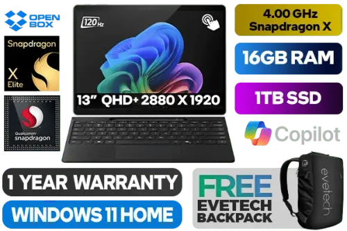 [Open Box Refurbished Laptop] [TOUCHSCREEN] Microsoft Surface Pro 11 Qualcomm® Snapdragon X Elite up to 4.00GHz Processor, 42MB Cache, 12x Cores / 16GB LPDDR5X RAM / 1TB Ultra-Fast NVME SSD / 13-inch QHD+ (2880 x 1920) PixelSense™ 120Hz Flow Touch Display / Integrated Qualcomm Adreno Graphics / Windows 11 Home 64bit / Surface Pro Wi-Fi 7 / Bluetooth 5.4 / 2 x USB Type-C with Thunderbolt™ 4 / 1 x Surface Connect port / 1 x Surface Pro Keyboard port / Dual studio microphones / Front-Facing Camera With 1440p full HD video / 10.0MP Ultra HD Rear-Facing Camera / Free Surface Type Cover / 6 Months Warranty / Microsoft Surface Pro 11 Snapdragon X Elite 2-in-1 Laptop Tablet Deal[Open Box Refurbished Laptop] [TOUCHSCREEN] Microsoft Surface Pro 11 Qualcomm® Snapdragon X Elite up to 4.00GHz Processor, 42MB Cache, 12x Cores / 16GB LPDDR5X RAM / 1TB Ultra-Fast NVME SSD / 13-inch QHD+ (2880 x 1920) PixelSense™ 120Hz Flow Touch Display / Integrated Qualcomm Adreno Graphics / Windows 11 Home 64bit / Surface Pro Wi-Fi 7 / Bluetooth 5.4 / 2 x USB Type-C with Thunderbolt™ 4 / 1 x Surface Connect port / 1 x Surface Pro Keyboard port / Dual studio microphones / Front-Facing Camera With 1440p full HD video / 10.0MP Ultra HD Rear-Facing Camera / Free Surface Type Cover / 6 Months Warranty / Microsoft Surface Pro 11 Snapdragon X Elite 2-in-1 Laptop Tablet Deal [GP37526] + FREE DELIVERY !