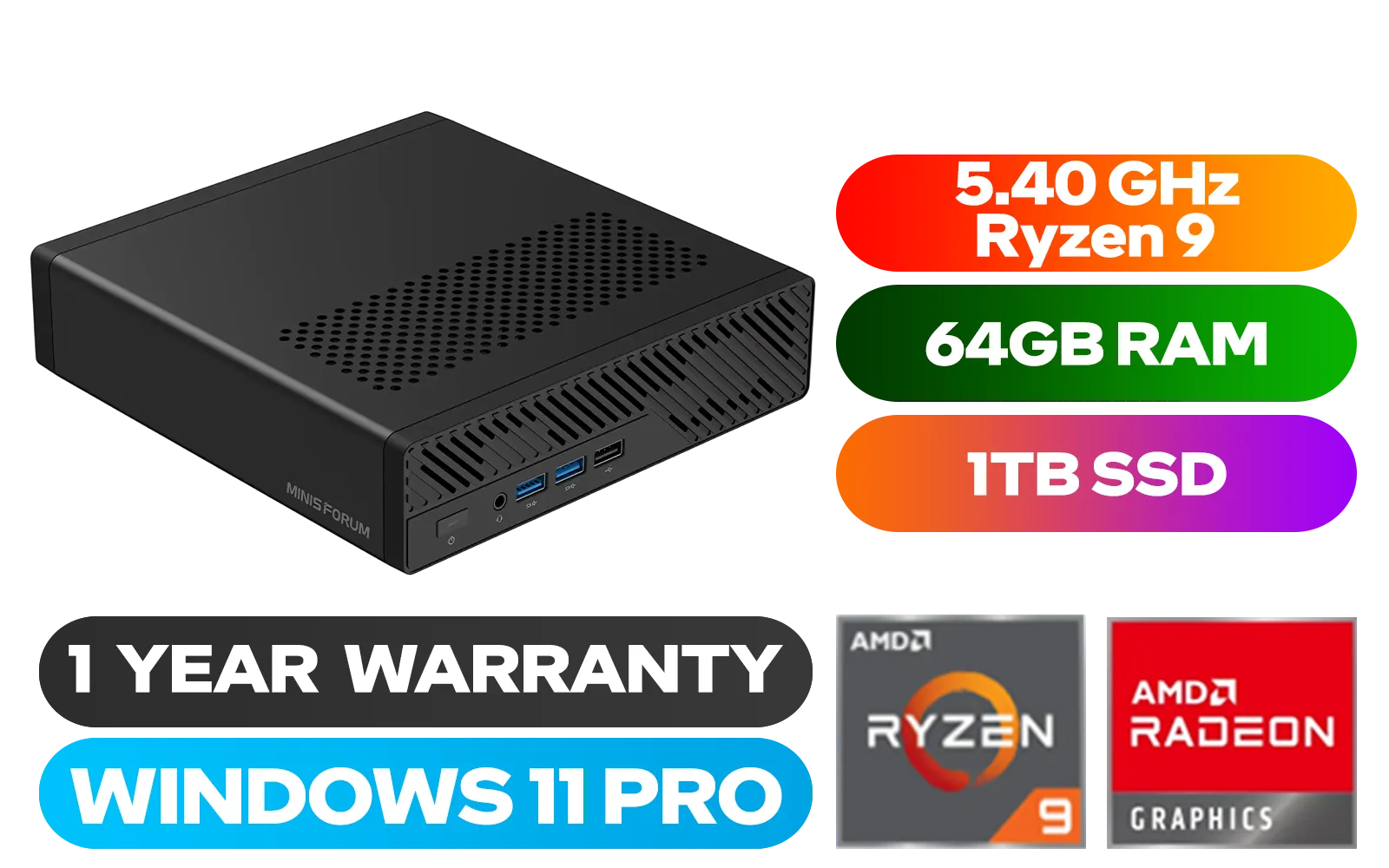 MINISFORUM MS-A2 MS-A2-9955 Ryzen 9 Mini PC โ 64GB/1TB